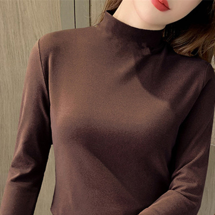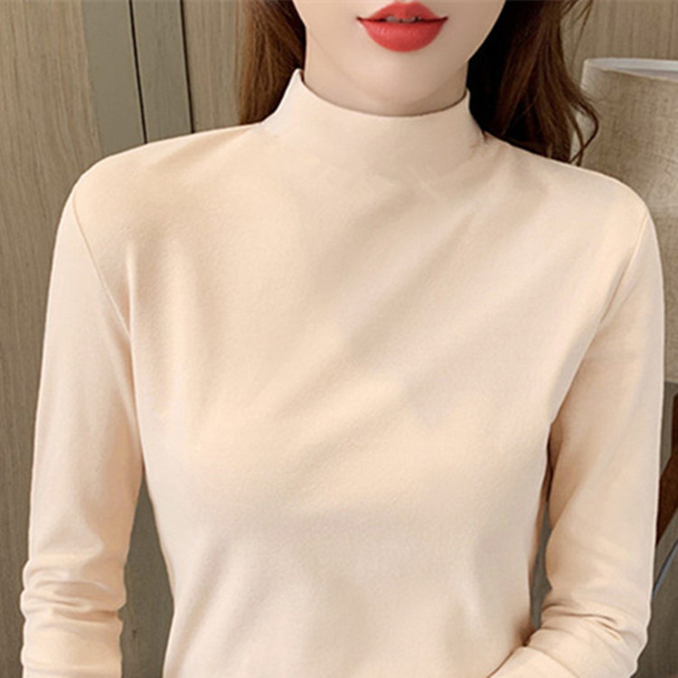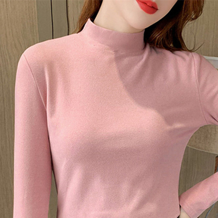 암모니아 벨벳 품질 200kg 뚱뚱한 여동생 세미 하이 칼라 패딩 따뜻한 겨울 긴 소매 티셔츠 재킷 여성 조수스토어 가기