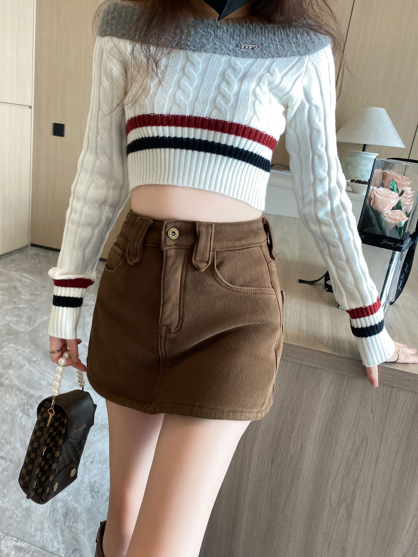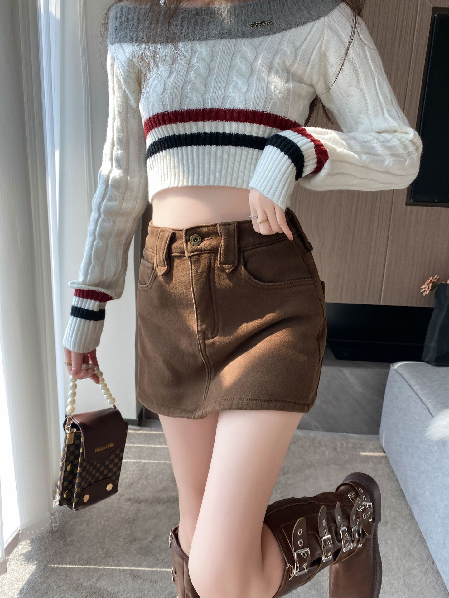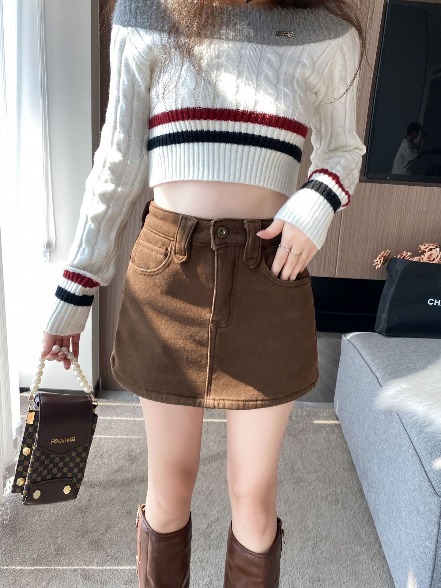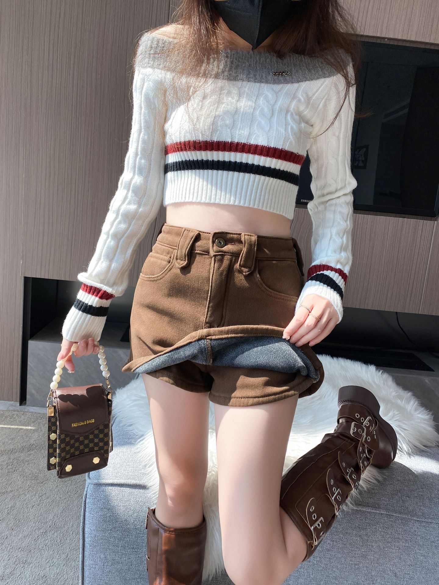인터넷 연예인 하이 웨이스트 눈부심 방지 데님 바지 여자의 2023 가을/겨울 한국 스타일 기모 조커 단어 짧은 부츠 바지스토어 가기