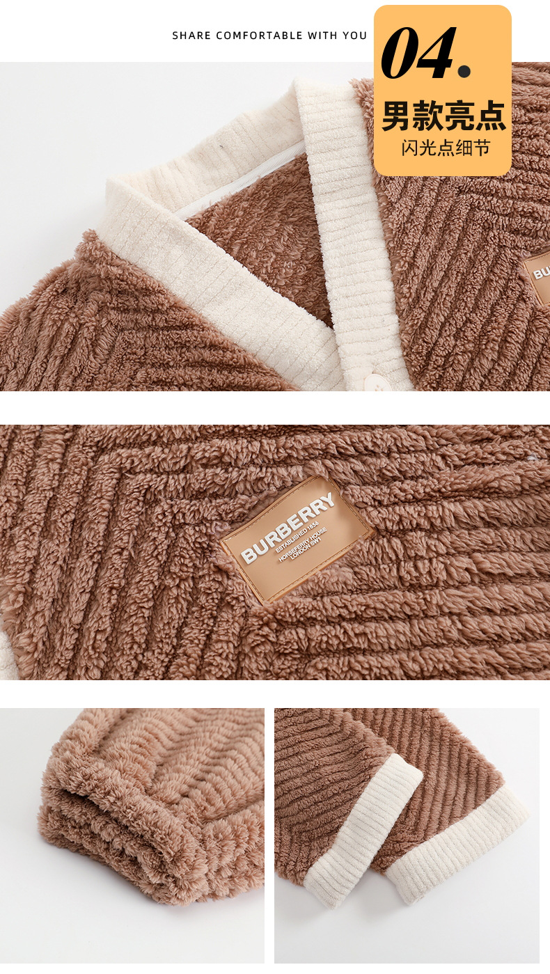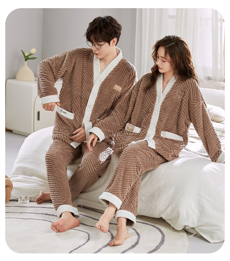 커플 잠옷 여자의 가을과 겨울 플란넬 카디건 긴 소매 기모 새로운 산호 양털 남자의 가정 옷 세트