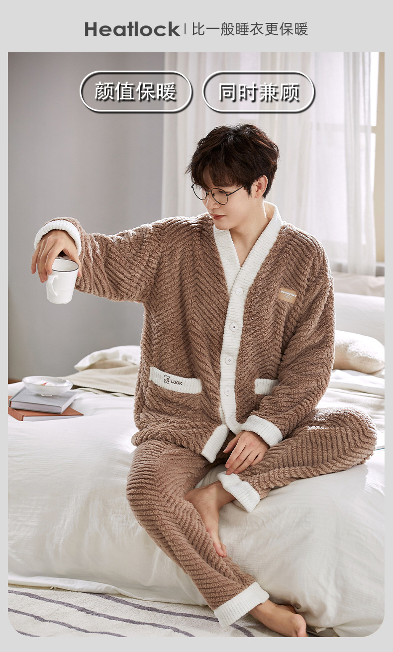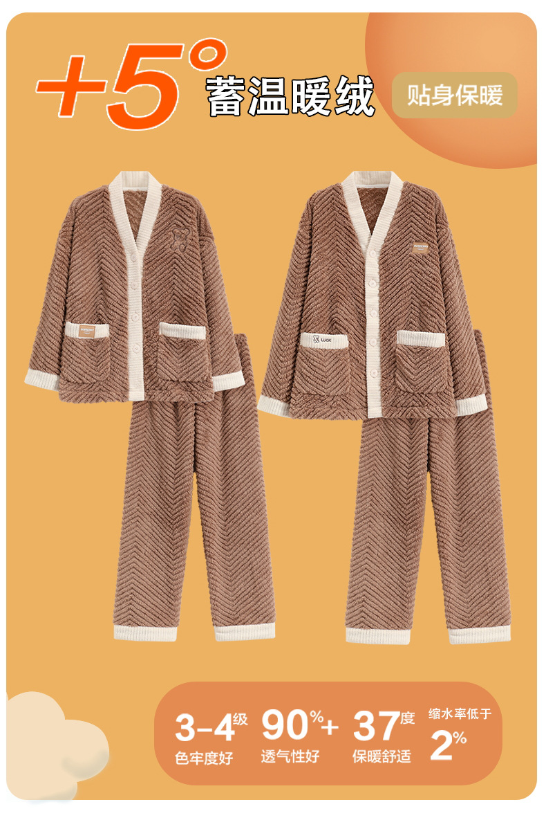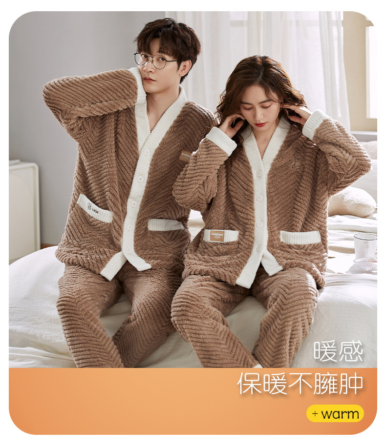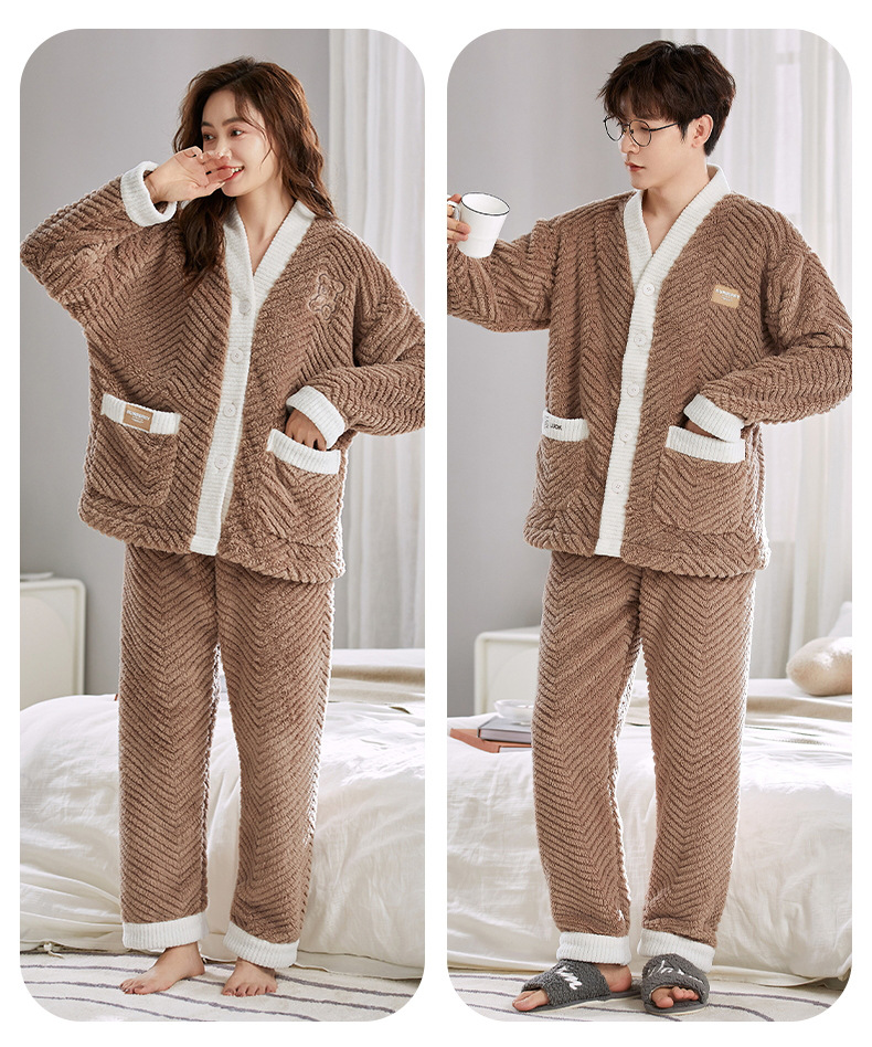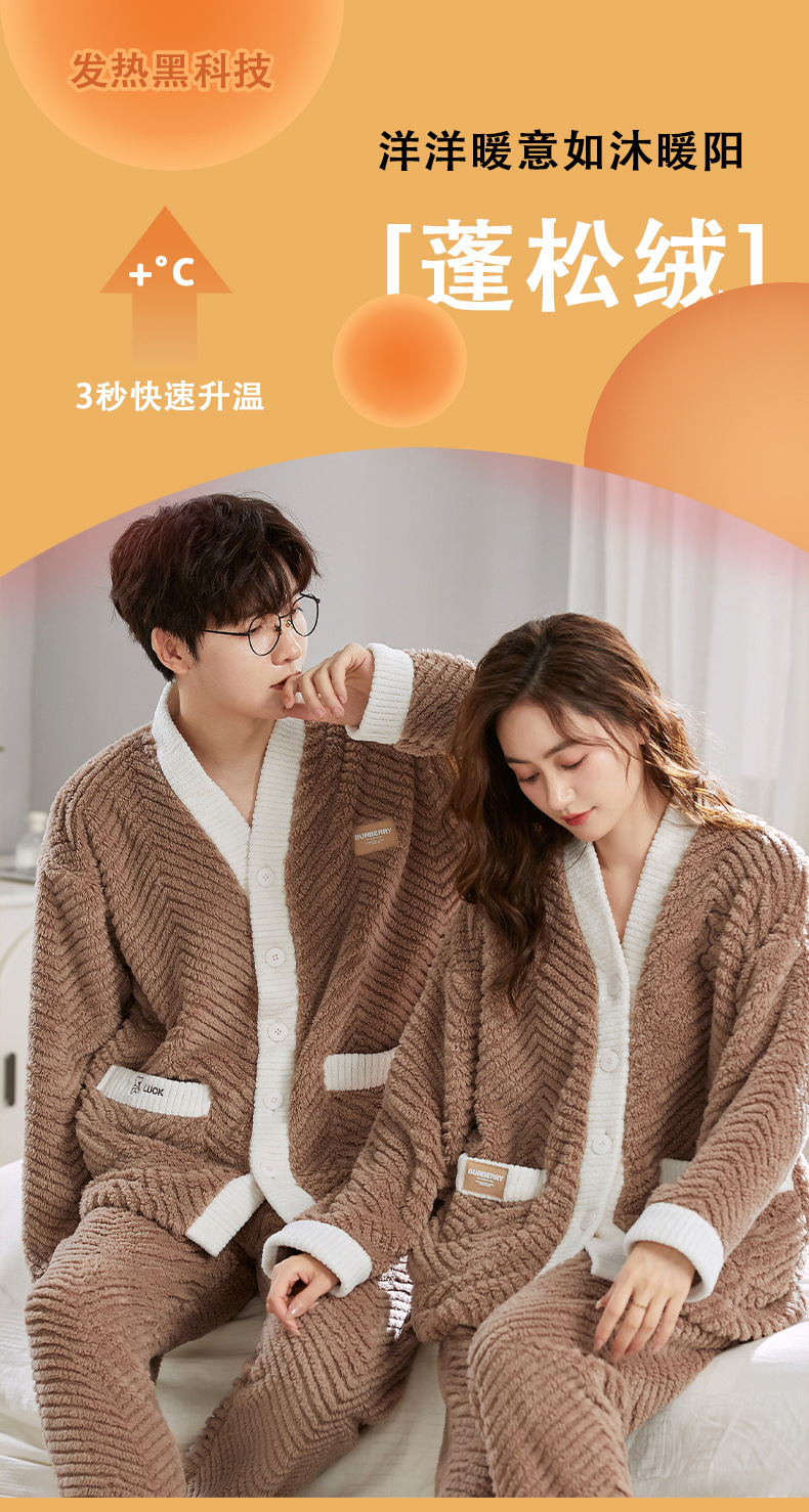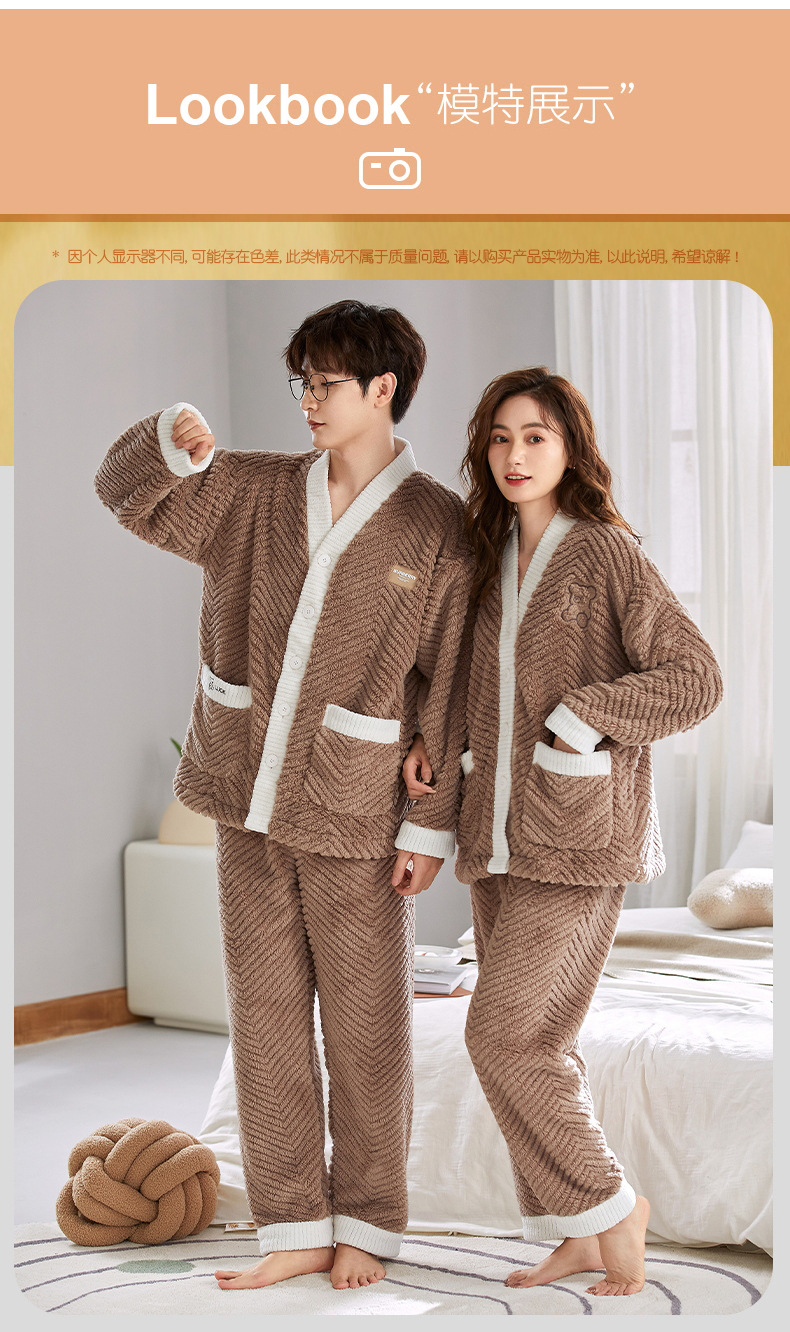 커플 잠옷 여자의 가을과 겨울 플란넬 카디건 긴 소매 기모 새로운 산호 양털 남자의 가정 옷 세트스토어 가기