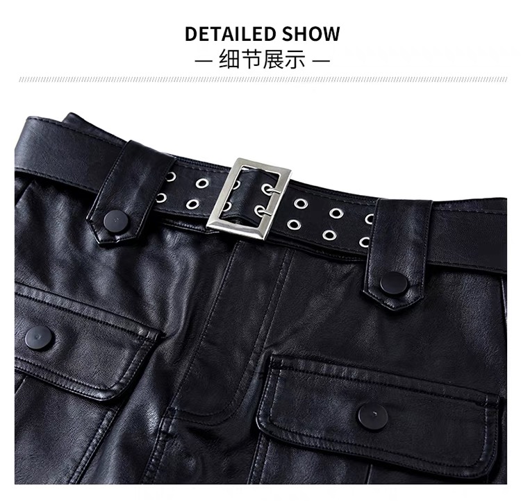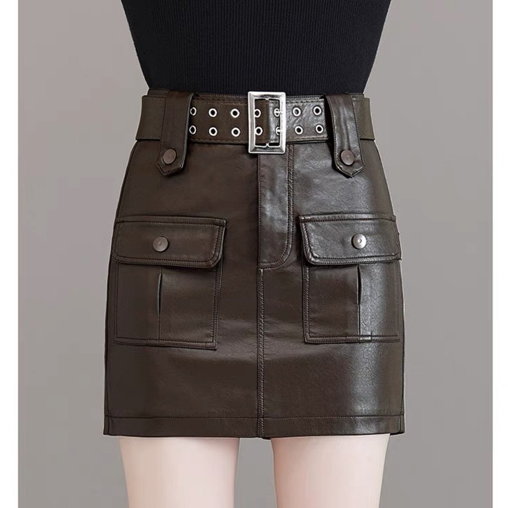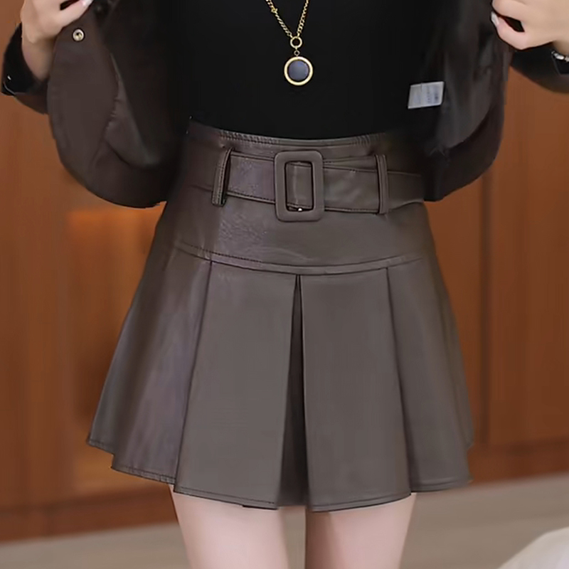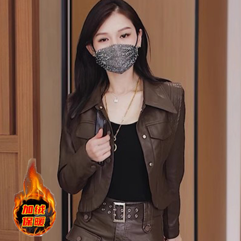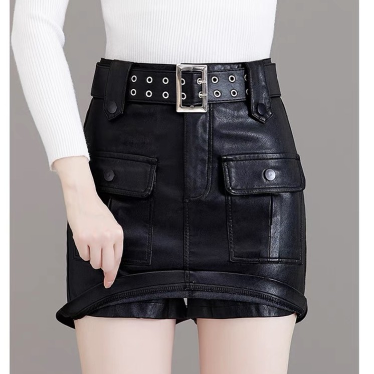 여자의 2023 가을 새로운 Haining 가죽 자켓 짧은 재킷 엉덩이 퀼로트 투피스 트렌디 한 세트스토어 가기