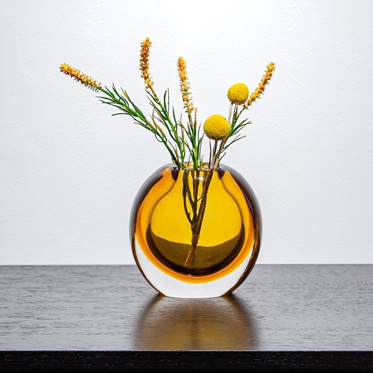 • 밀라노 디자이너 플랫 꽃병 1314 앰버