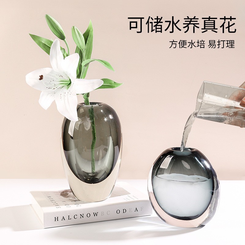 현대적이고 심플한 유리 꽃병 꽃꽂이 거실 현관 모델룸 식탁 호텔 장식품 수제