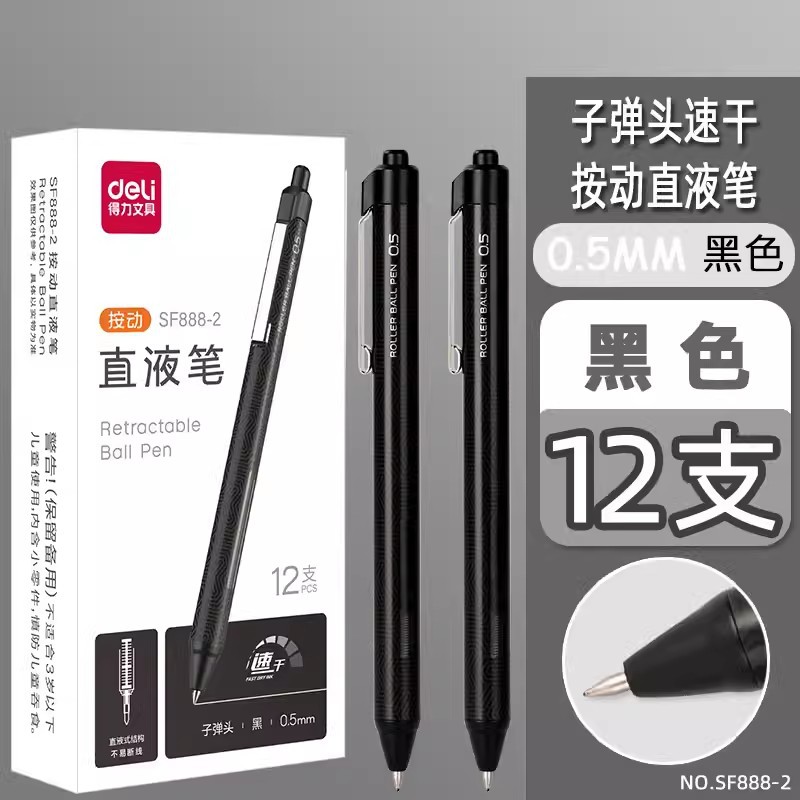 델리 SF888-2 프레스 직접 액체 펜 빠른 건조 0.5mm 총알 학생 브러시 테스트 펜 비즈니스 사인 펜