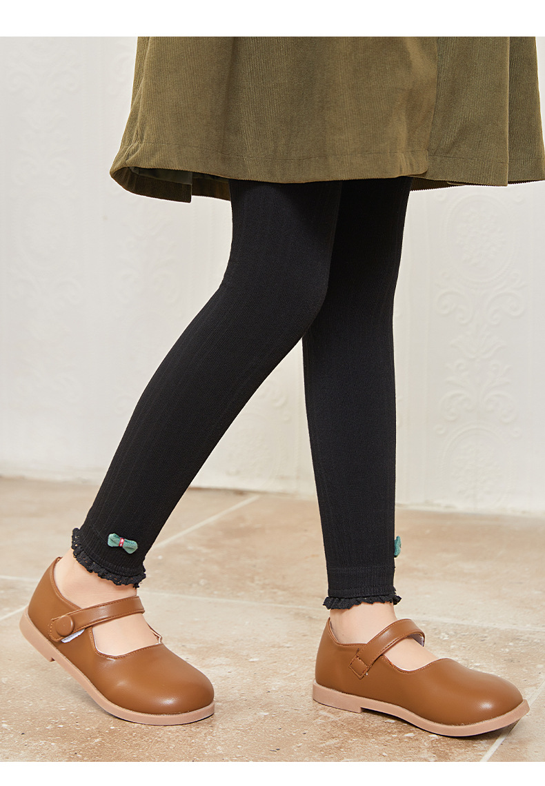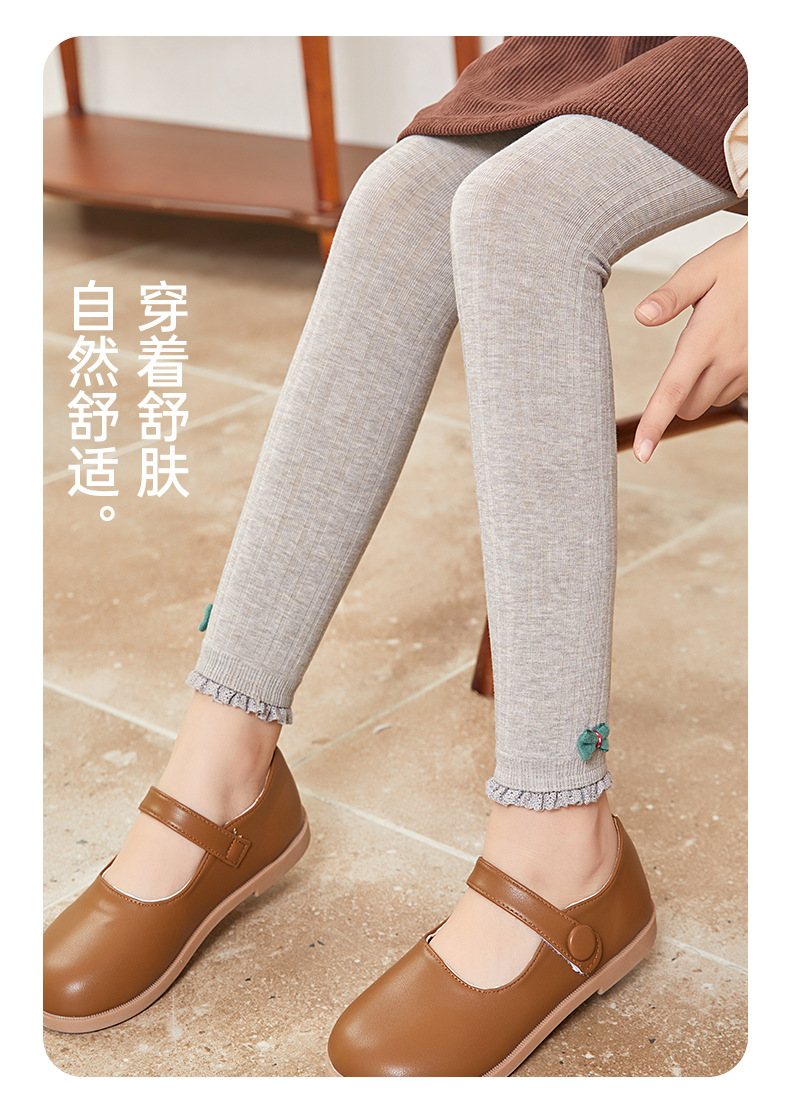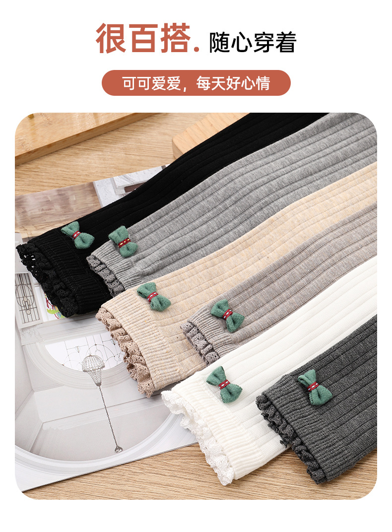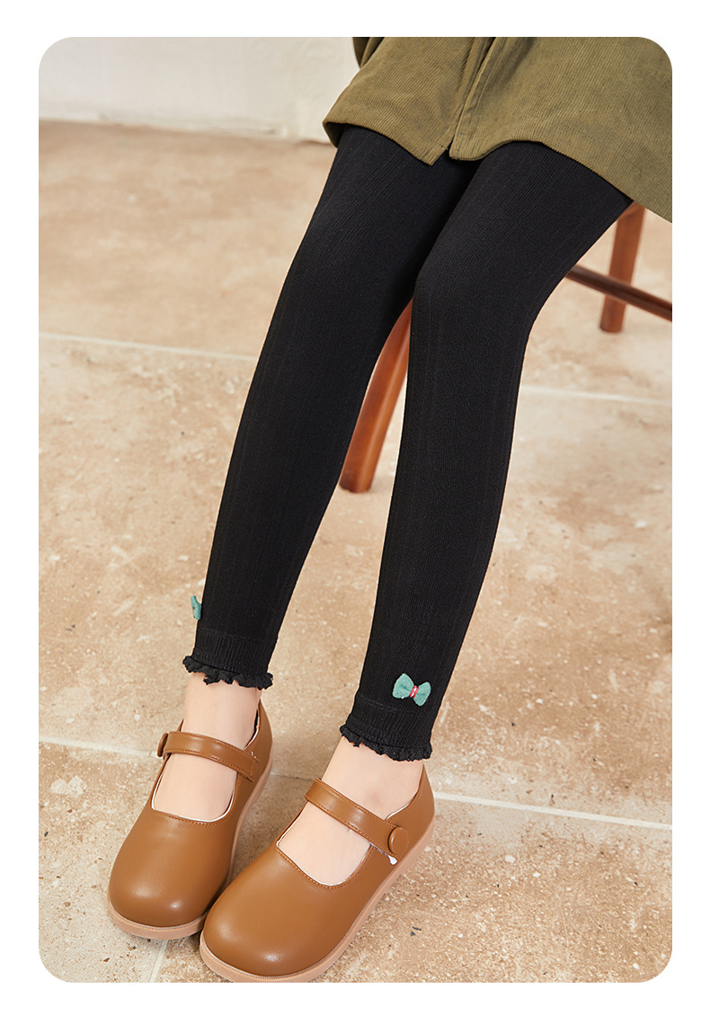 가을 2024 새로운 어린이 중간 두꺼운 외부 착용 발목 길이 바지 소녀 얇은 녹색 활 면 팬티 스타킹스토어 가기