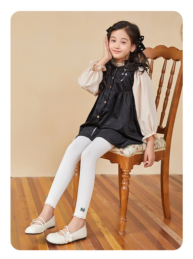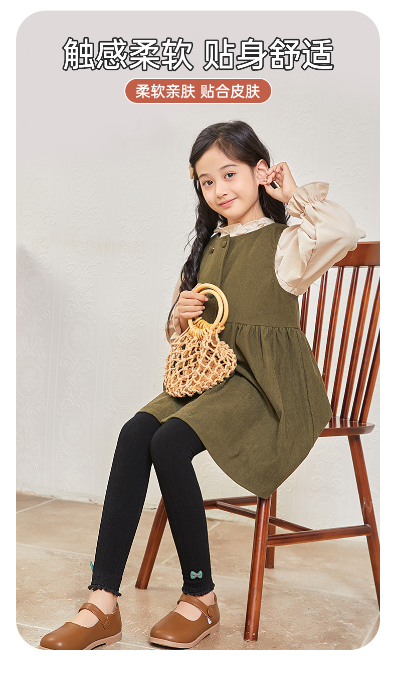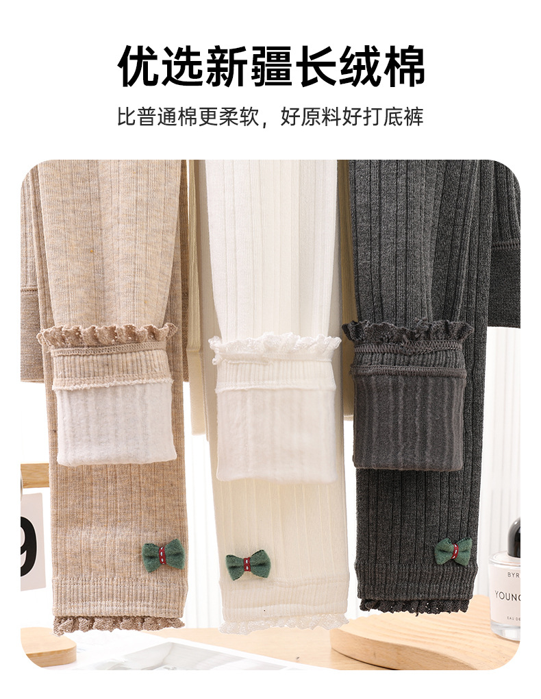 가을 2024 새로운 어린이 중간 두꺼운 외부 착용 발목 길이 바지 소녀 얇은 녹색 활 면 팬티 스타킹스토어 가기