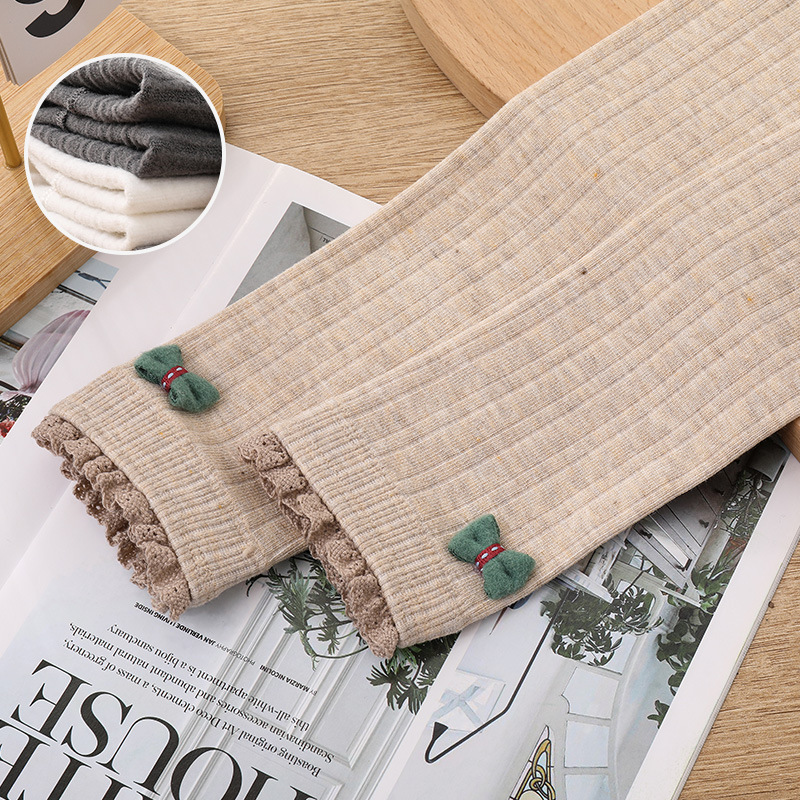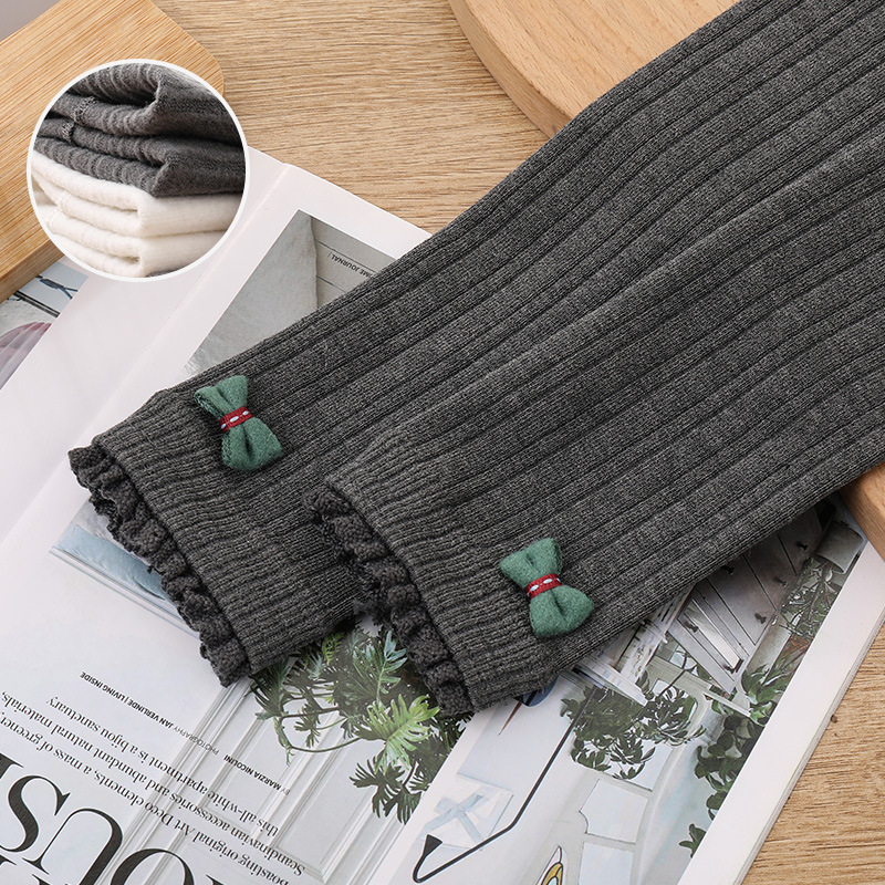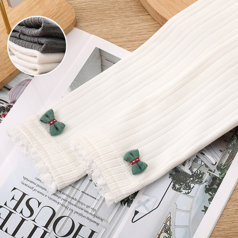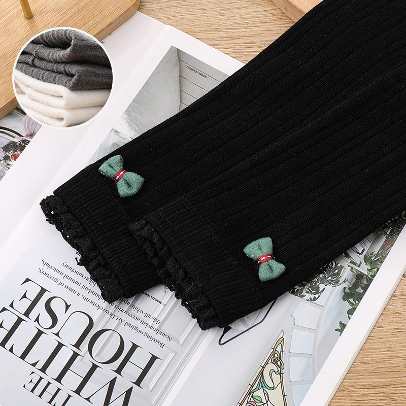 가을 2024 새로운 어린이 중간 두꺼운 외부 착용 발목 길이 바지 소녀 얇은 녹색 활 면 팬티 스타킹