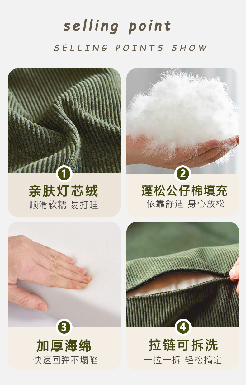• 제거하고 세척하기 쉬운 부티크 [대 175cm] 코듀로이 그린