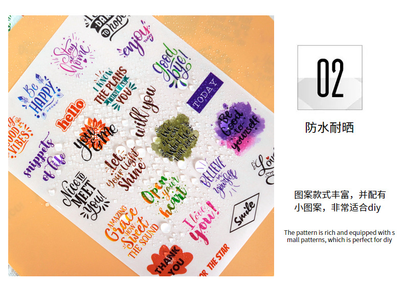 국경 간 영어 스티커 문구를 장려하는 투명한 컬러 텍스트 장식용 손 계정 영감 스티커 계획