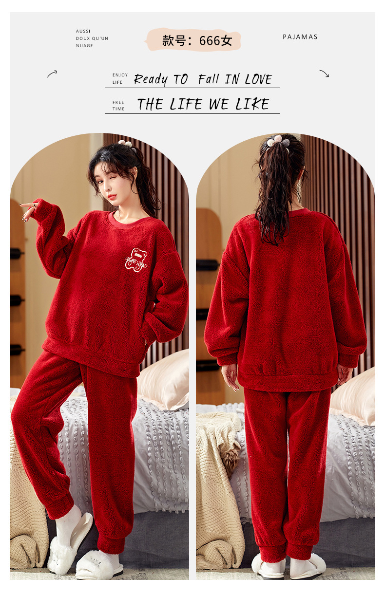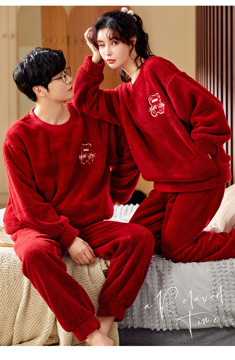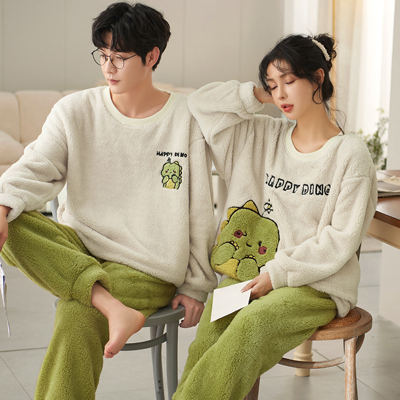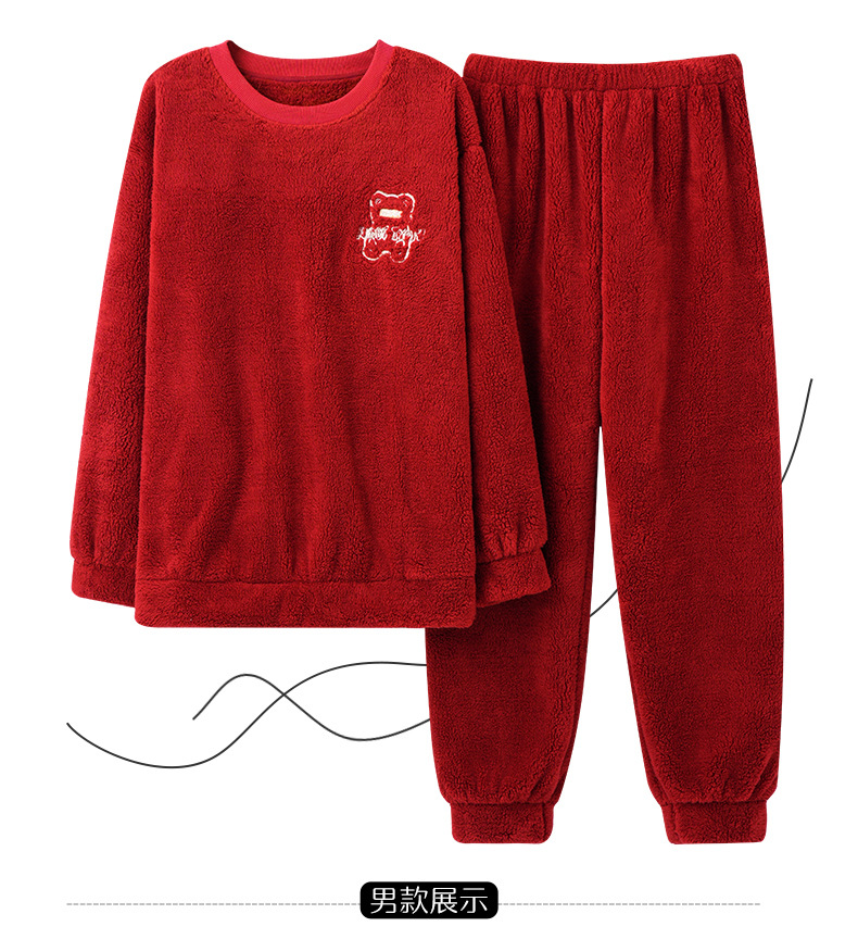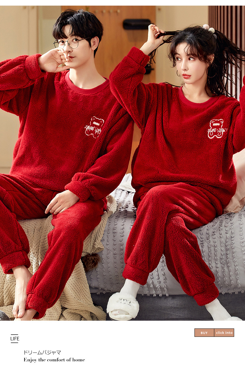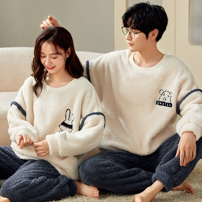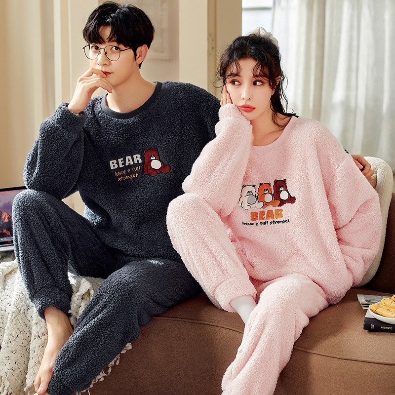남성과 여성을위한 새로운 커플 잠옷 가을과 겨울 기모 두꺼운 따뜻한 플란넬 가정 옷 세트 결혼식 년스토어 가기