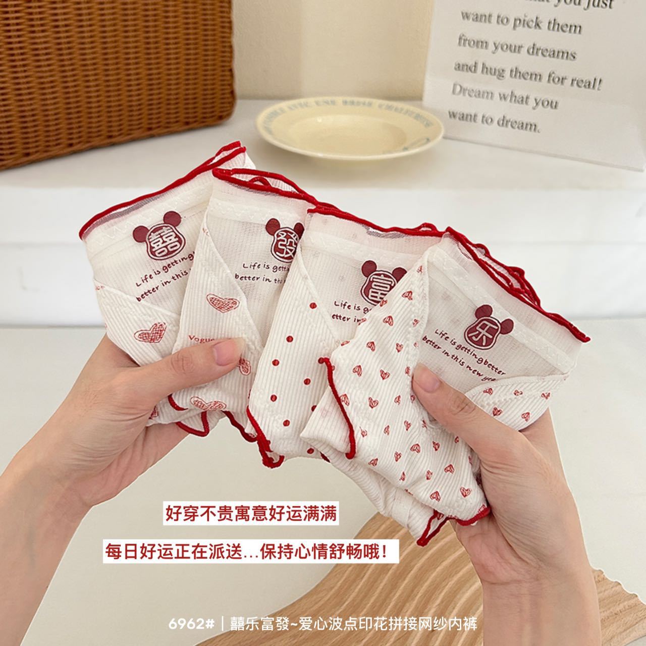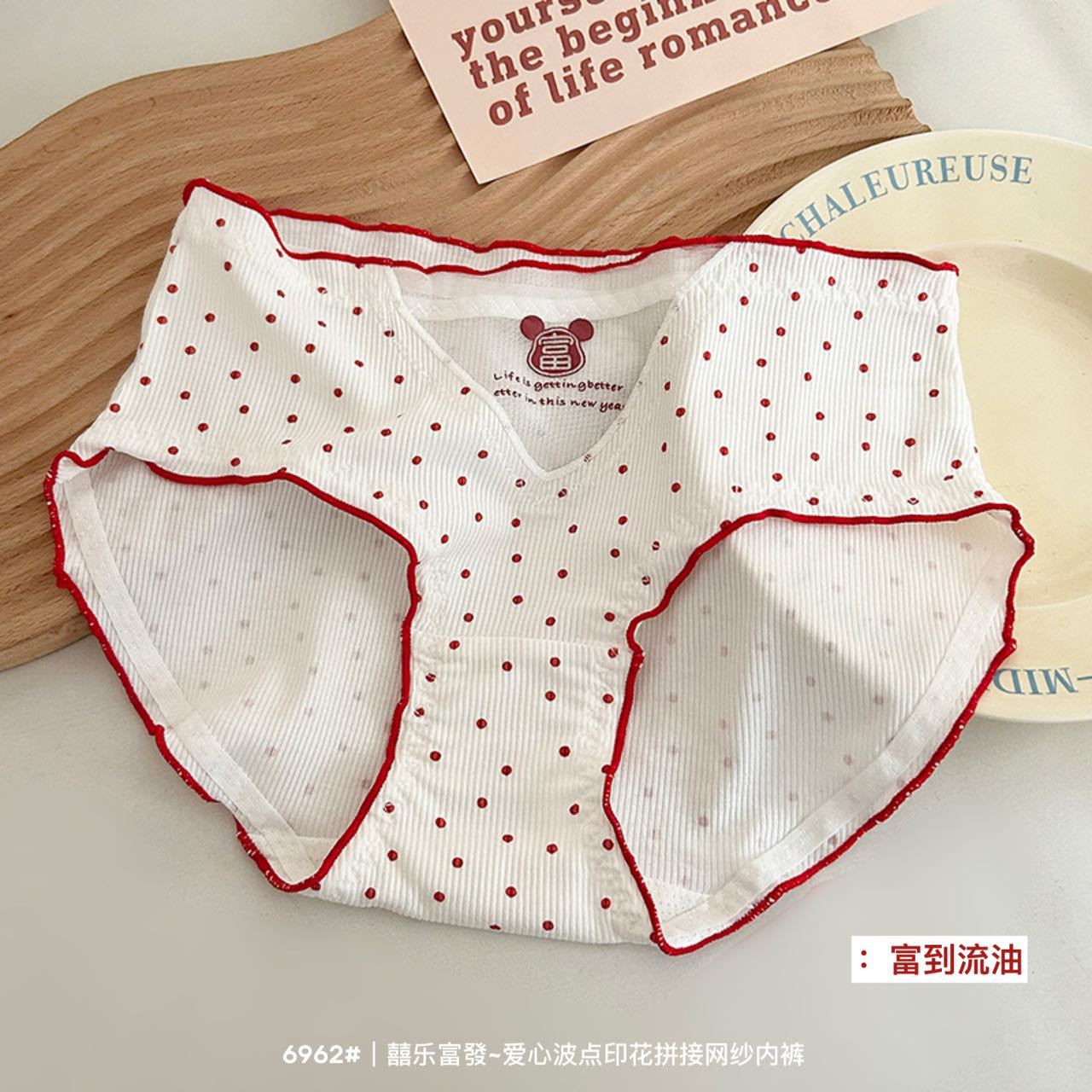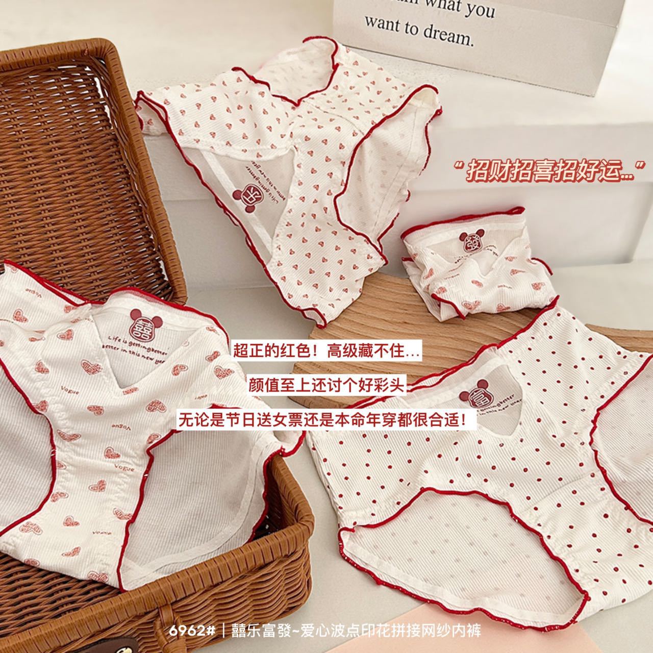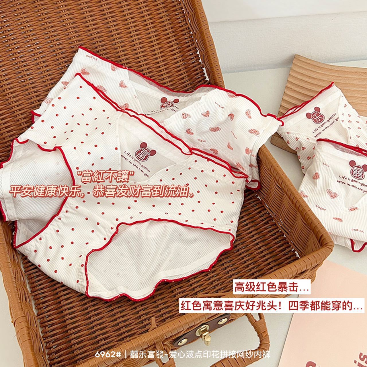 웨딩 레드 속옷 베밍니아 속옷 물방울 무늬 귀여운 새해 레드 편안한 여성의 일본 속옷