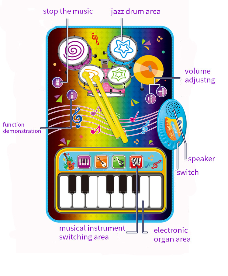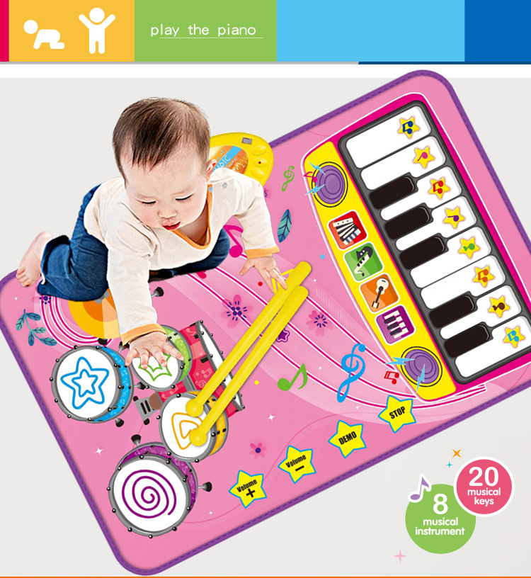 아마존 어린이 음악 피아노 재즈 드럼 투인원 플레이 패드 양면 방수 성인도 크롤링 담요를 재생할 수 있습니다스토어 가기