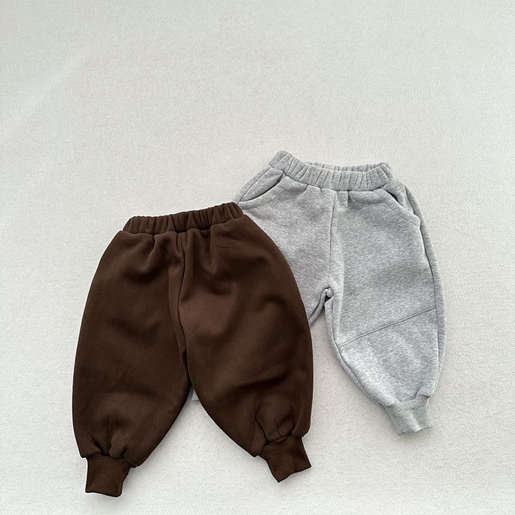 따뜻한 노크 좋은 착용 ~ 어린이 원피스 벨벳 스포츠 바지 겨울 새로운 소년 소녀 아기 유치원 발가락 바지