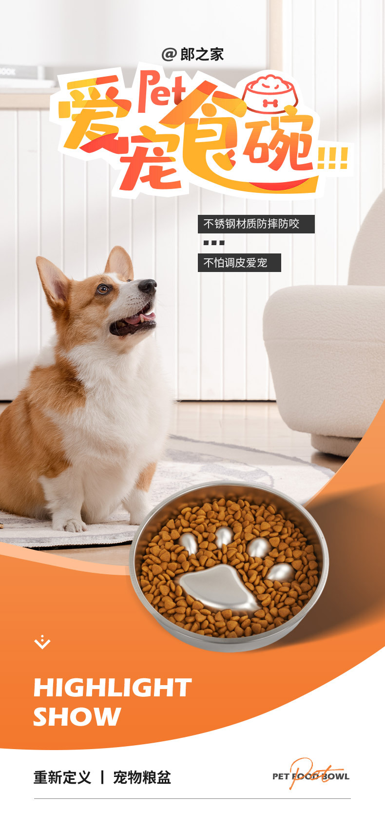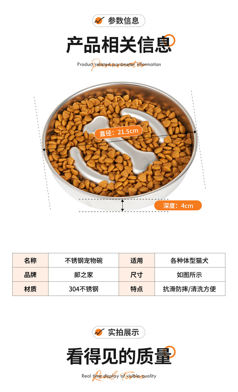 국경 간 특수 304 스테인레스 스틸 애완 동물 그릇 고양이 그릇 개 그릇 반대로 뒤집는 미끄럼 방지 질식 특수 슬로우 식품 그릇 개 분지