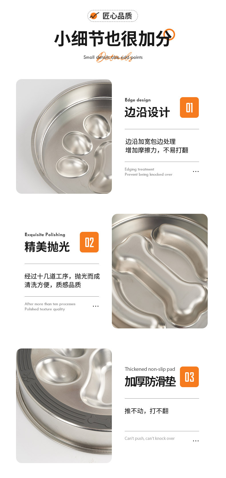 • 304각 뼈 슬로우 푸드 그릇(실리콘 바닥 포함)