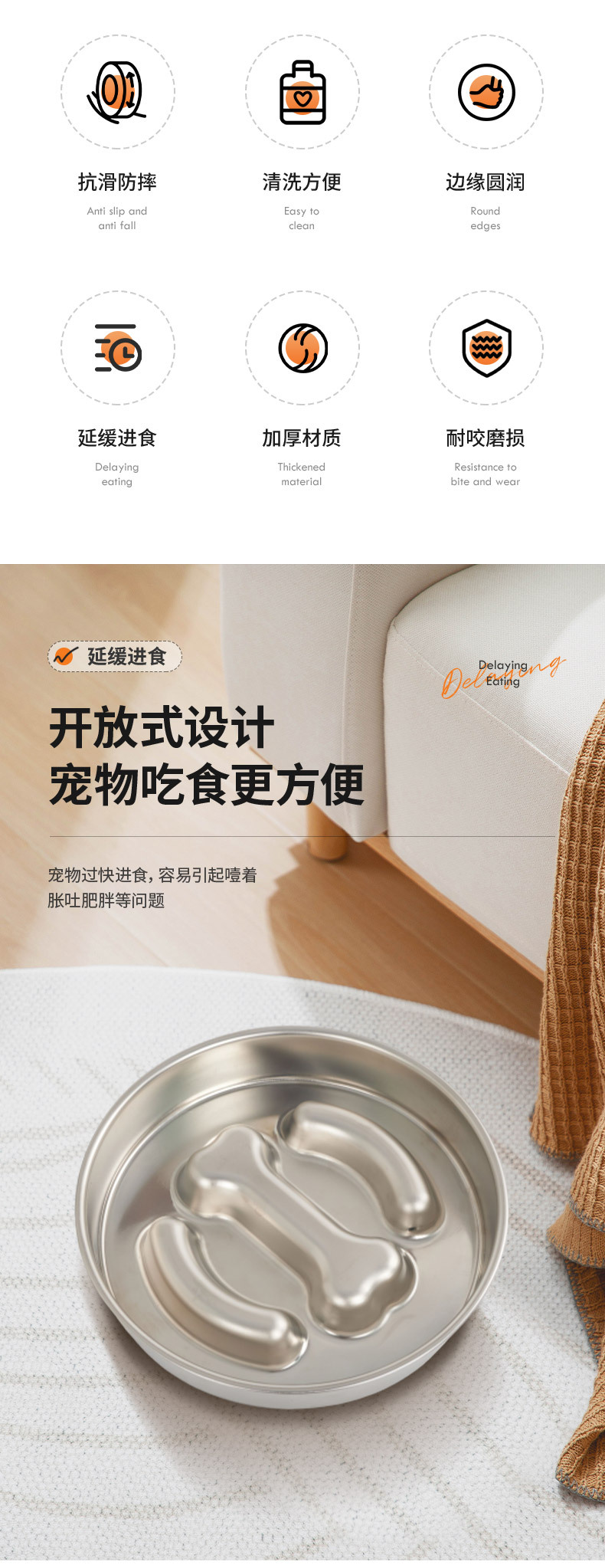 • 304 뼈 사랑 느린 음식 그릇 (실리콘 바닥 없음)