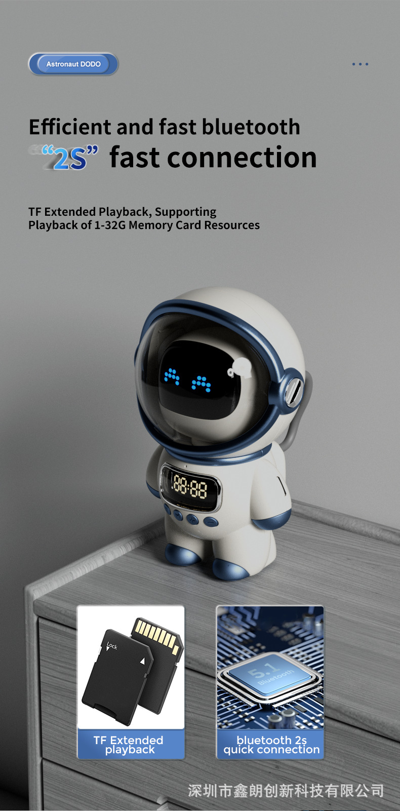 국경 간 우주 비행사 스마트 AI 스페이스 맨 블루투스 오디오 데스크톱 휴대용 블루투스 스피커 창조적 인 선물스토어 가기