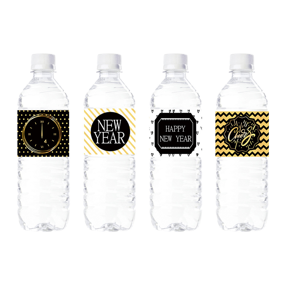 유럽과 미국 블랙 골드 파티 장식 24PC 컬러 방수 병 스티커 국경 새해 테마 병 라벨 스티커 도매