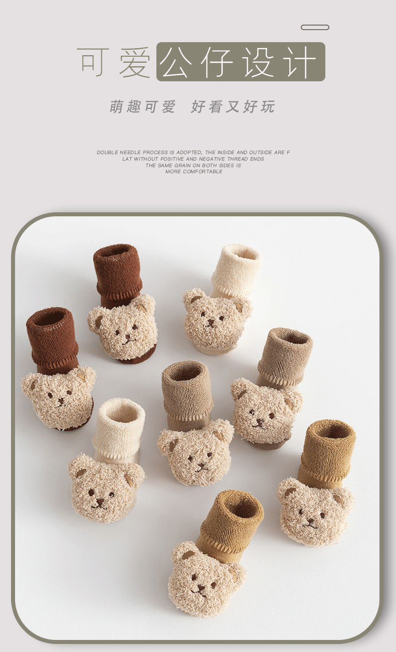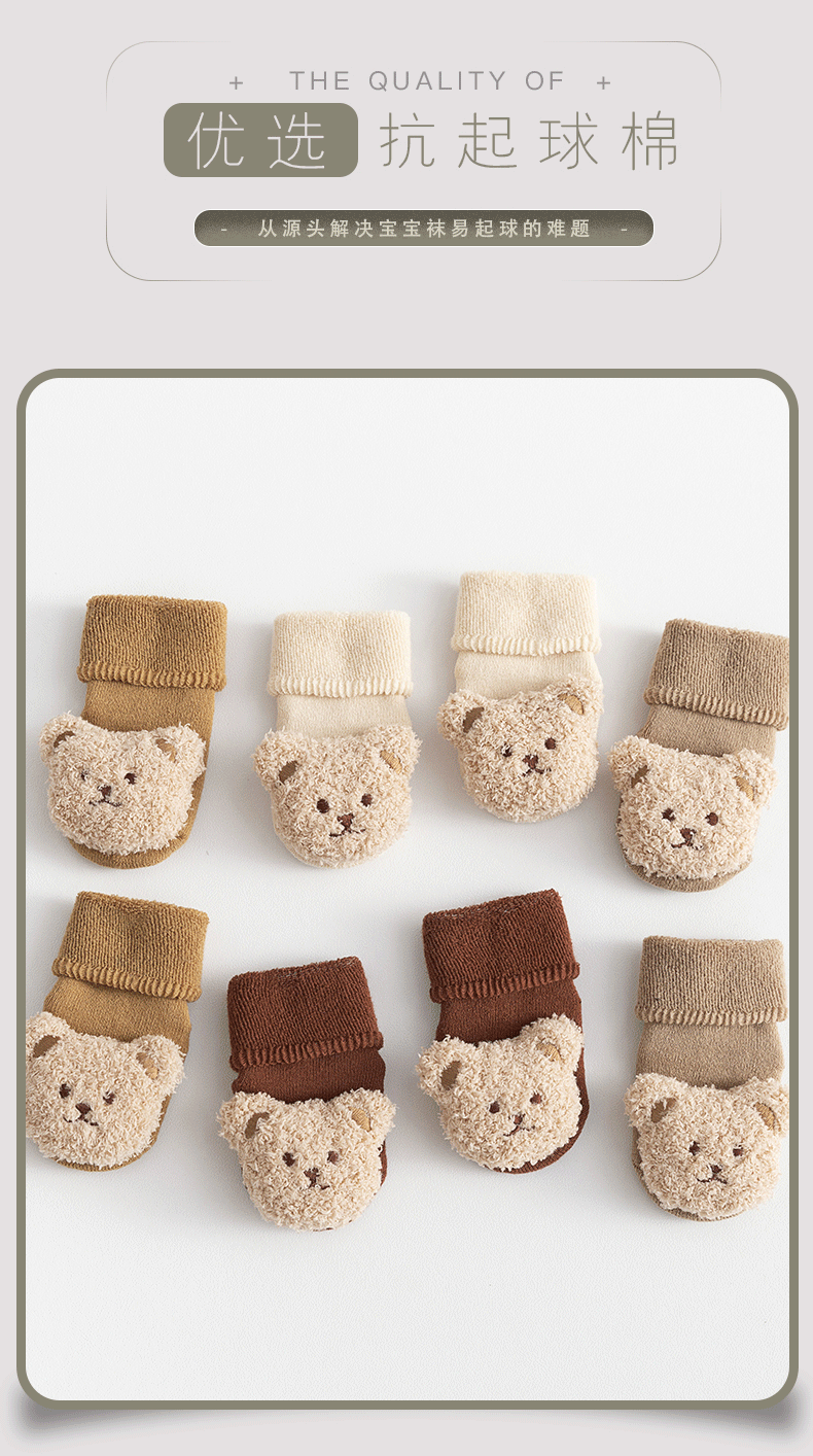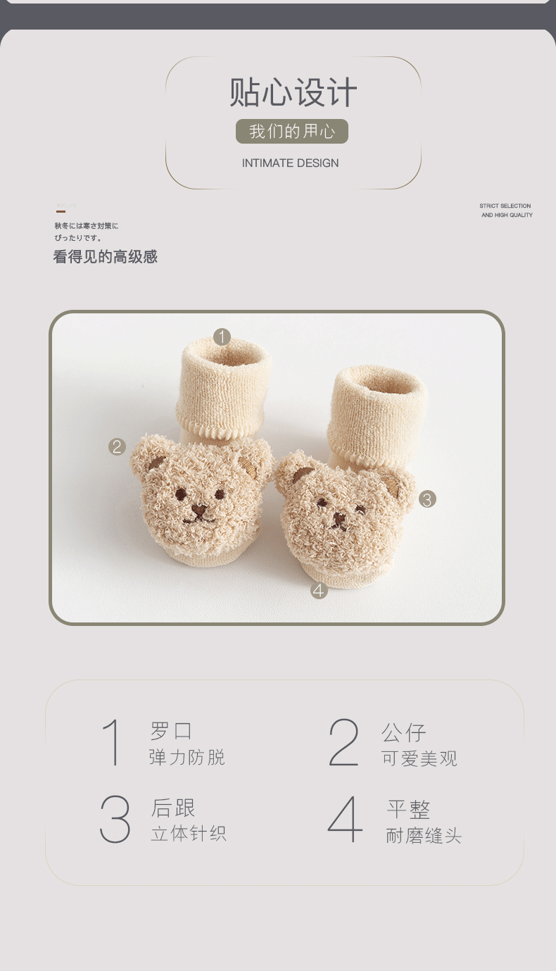 신생아 유아 클래스 A 면화 가을, 겨울 테리 플러스 벨벳 두꺼운 따뜻한 중간 튜브 유아 바닥 신발 양말