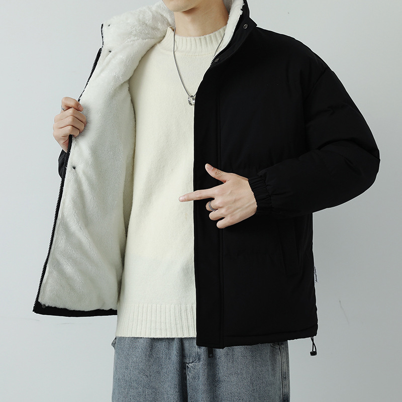 면 패딩 재킷 남성 겨울 2023 새로운 양고기 벨벳 패딩 따뜻한 코트 청소년 캐주얼 느슨한 스탠드 칼라 방한 면 패딩 재킷