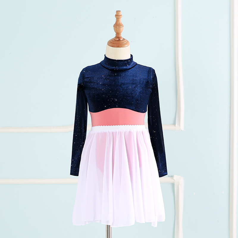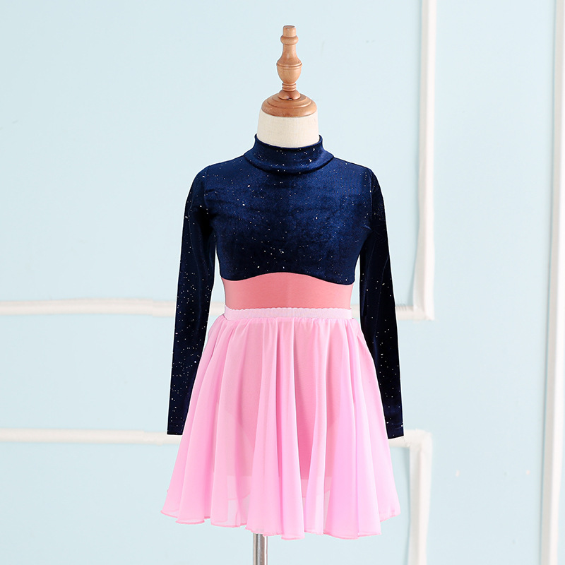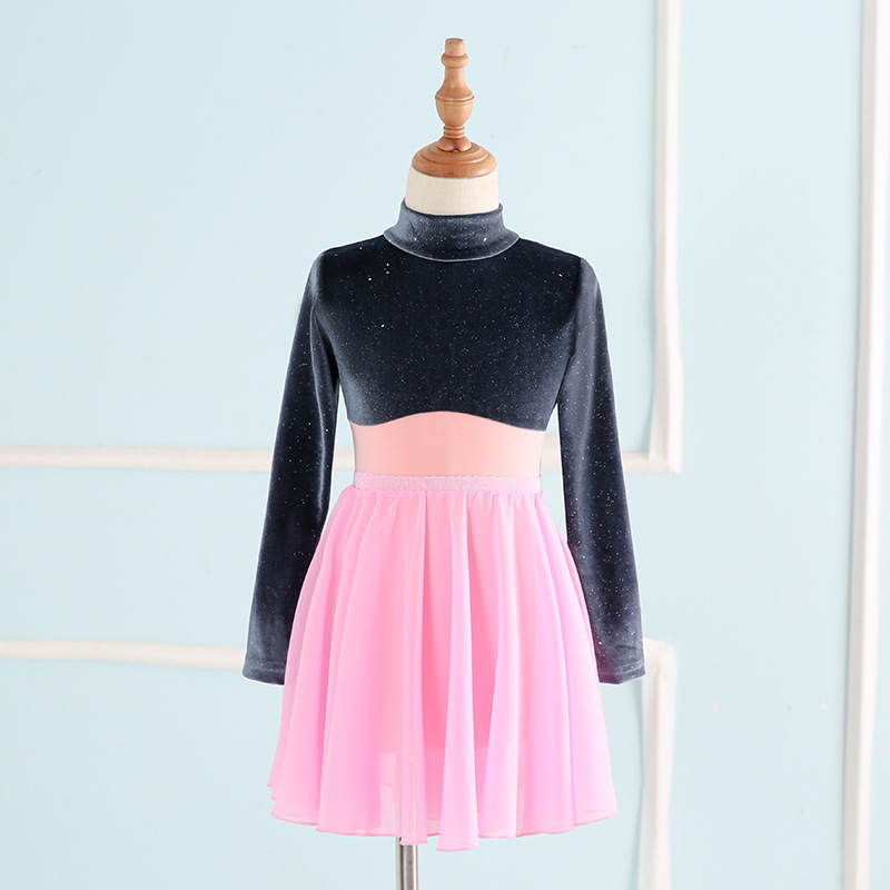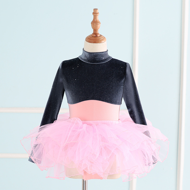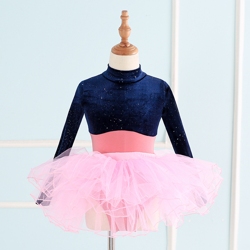 • 티베트 블루 하이 칼라 벨벳 긴 소매 + 핑크 투투 스커트