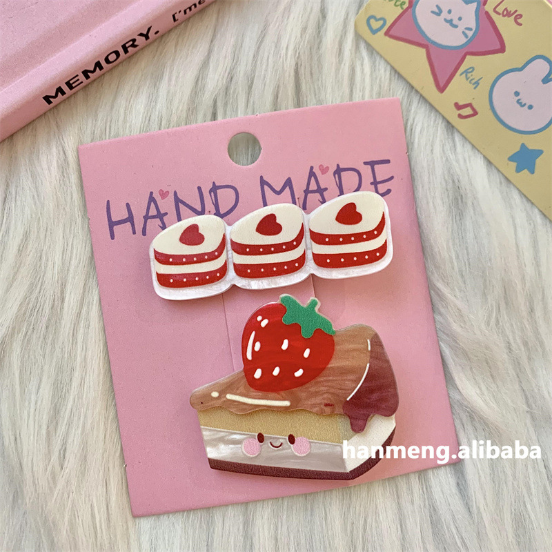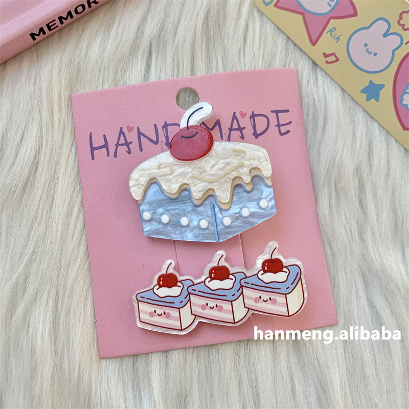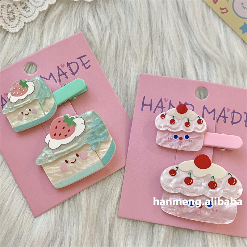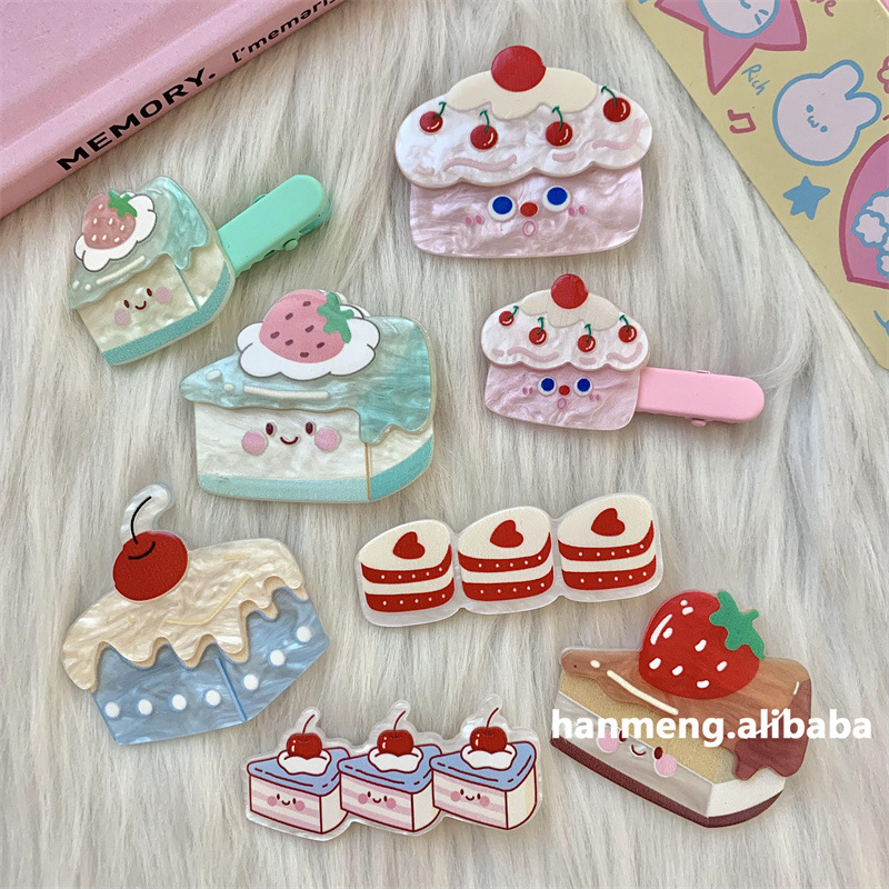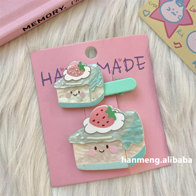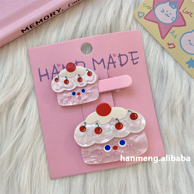 귀여운 소녀 크리 에이 티브 만화 체리 케이크 Duckbill 클립 깨진 머리핀 옆 앞머리 머리핀 학생 헤어 액세서리 머리 장식