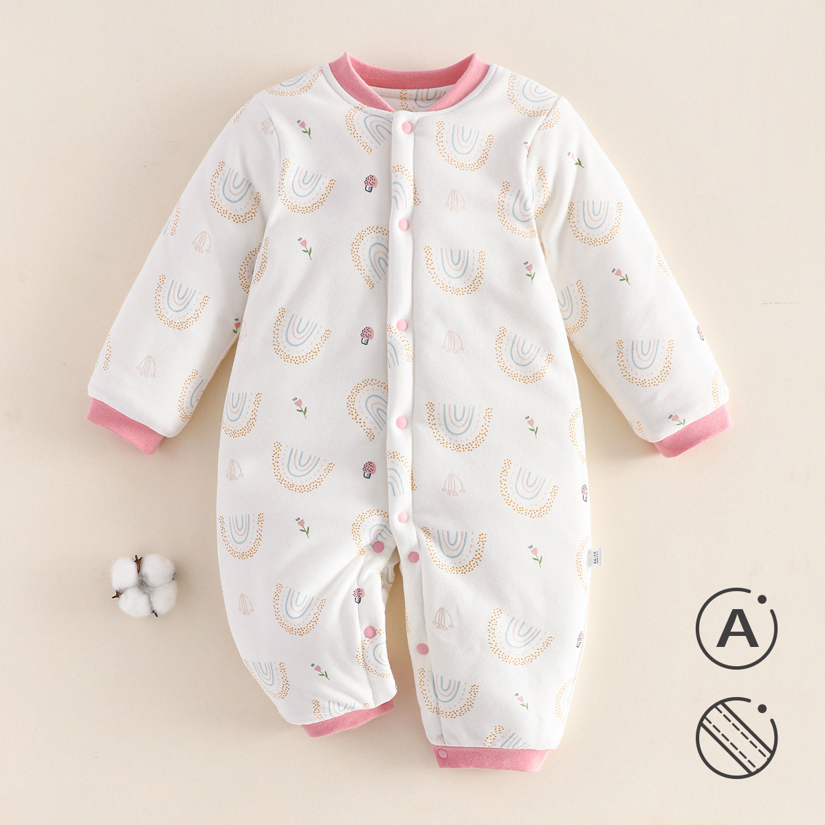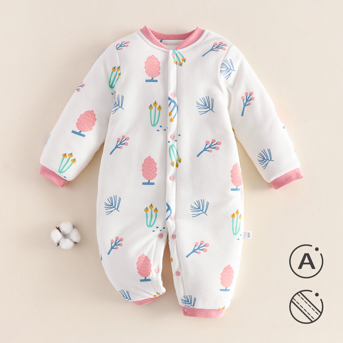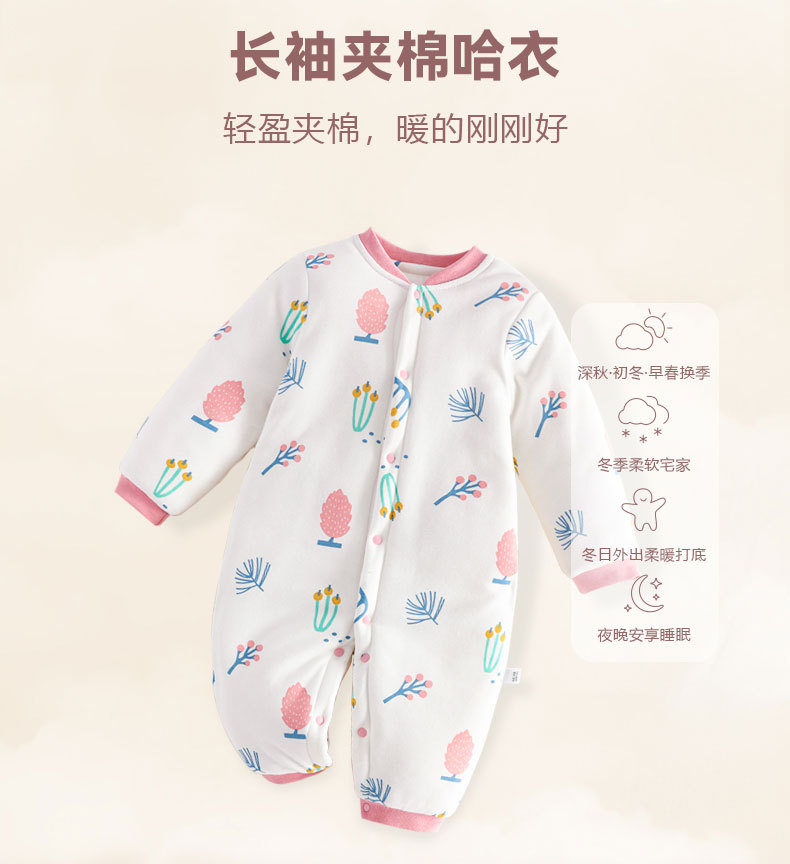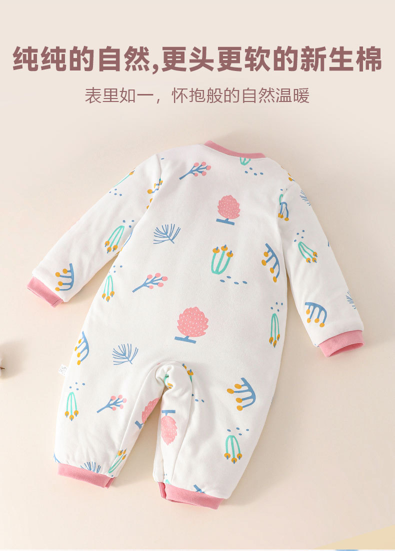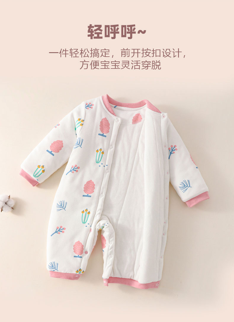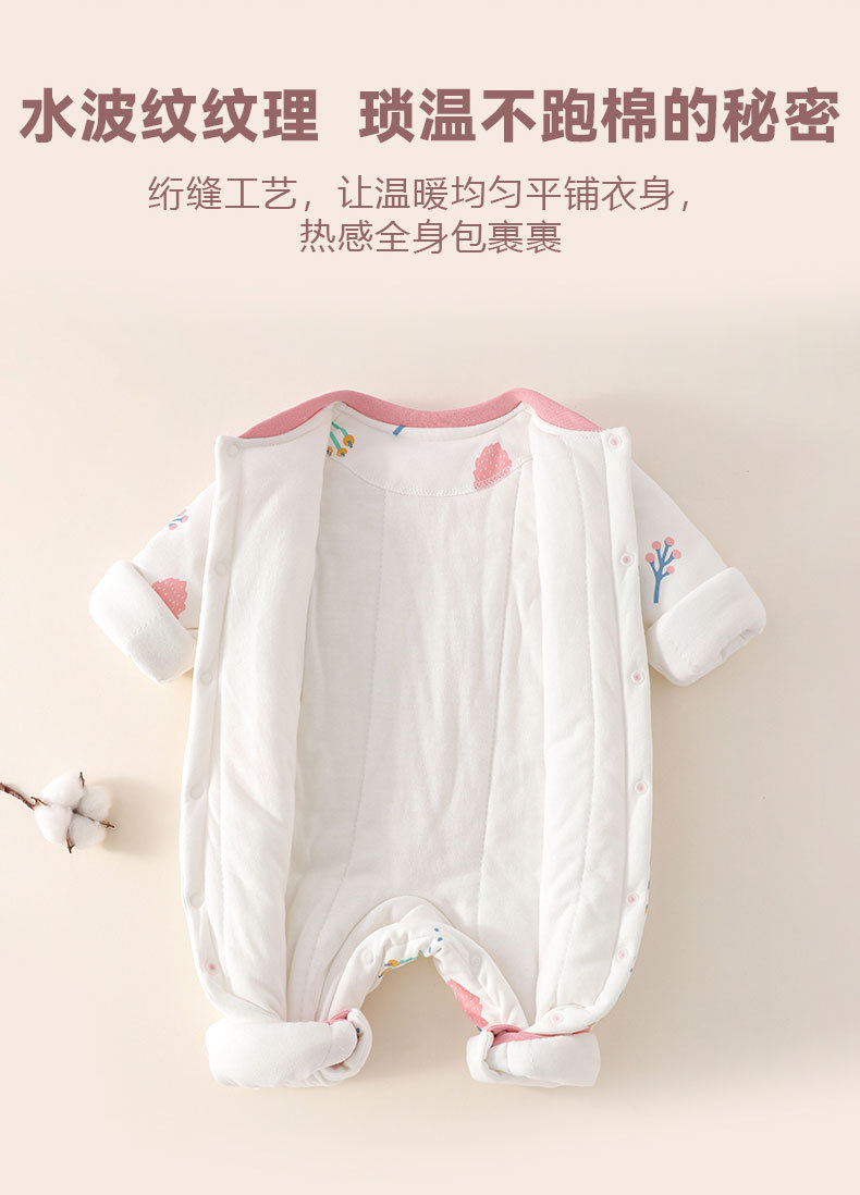 新生儿衣服新款长袖夹棉保暖无骨爬爬服 婴儿连体衣冬季外出打底