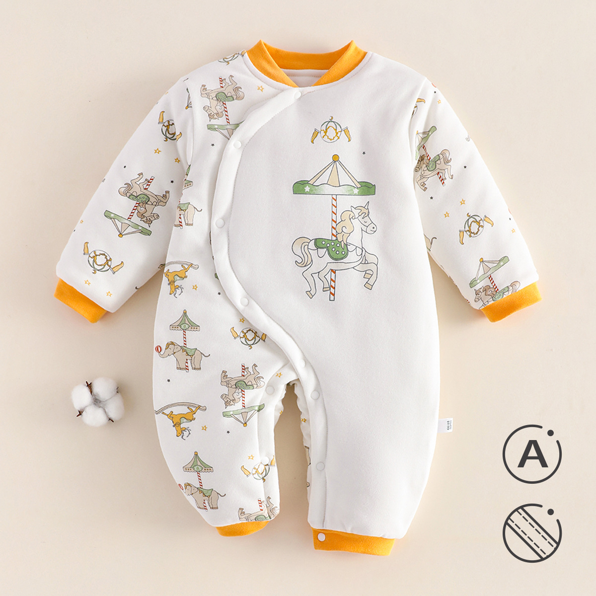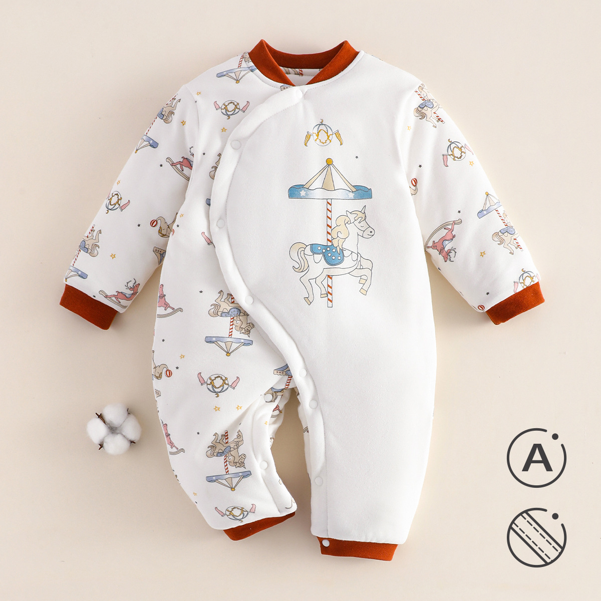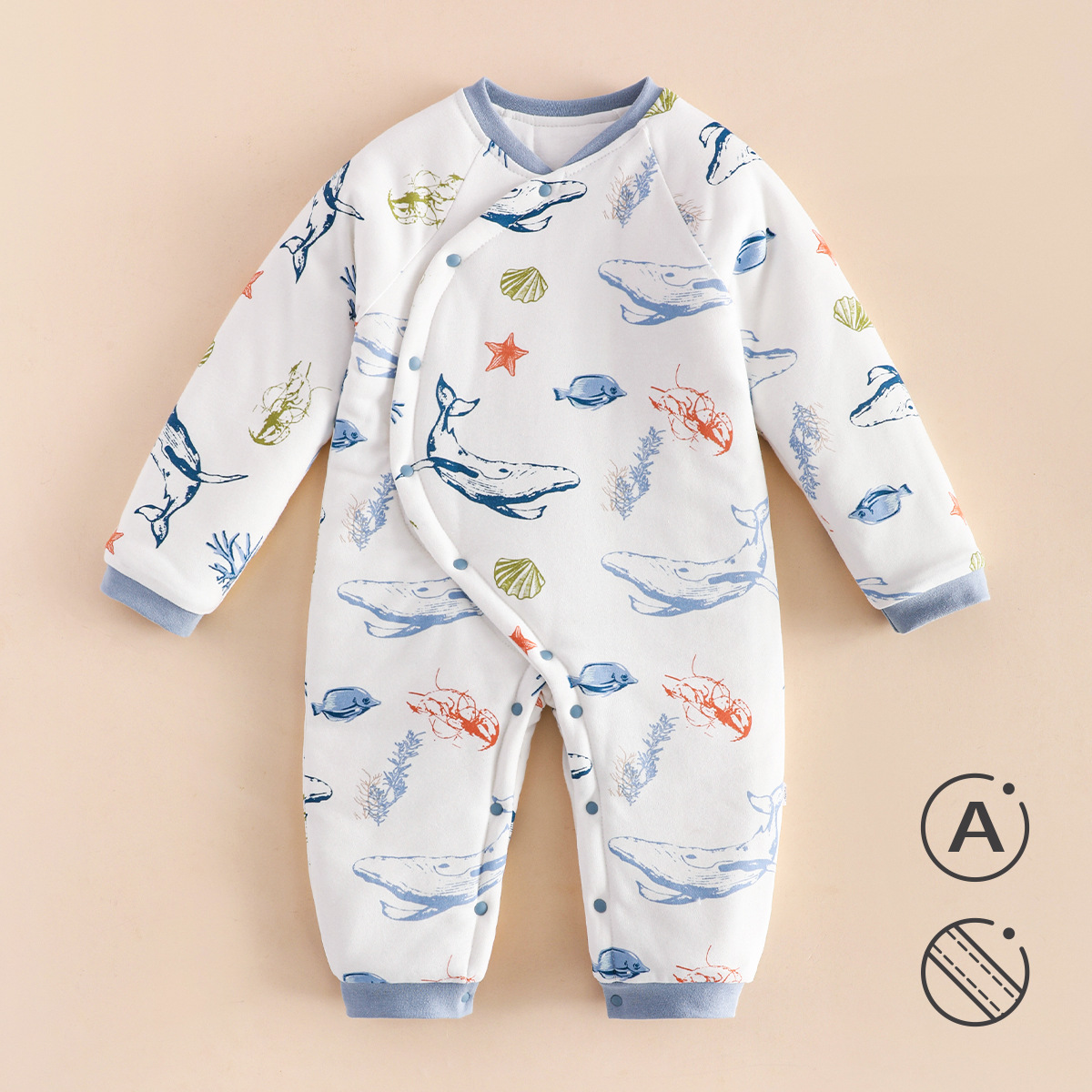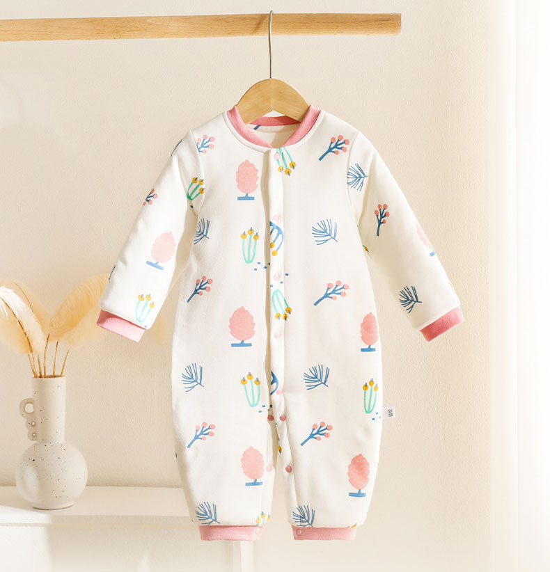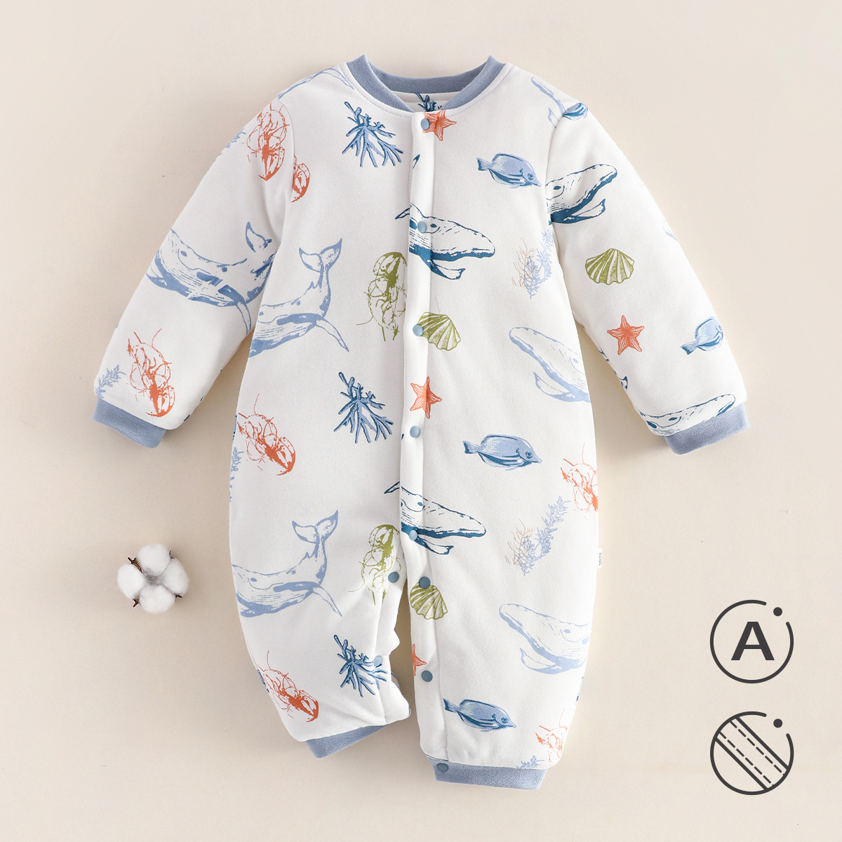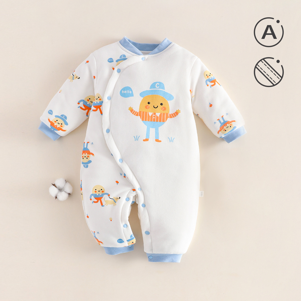 新生儿衣服新款长袖夹棉保暖无骨爬爬服 婴儿连体衣冬季外出打底