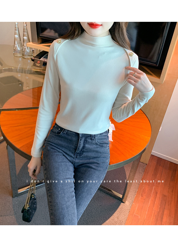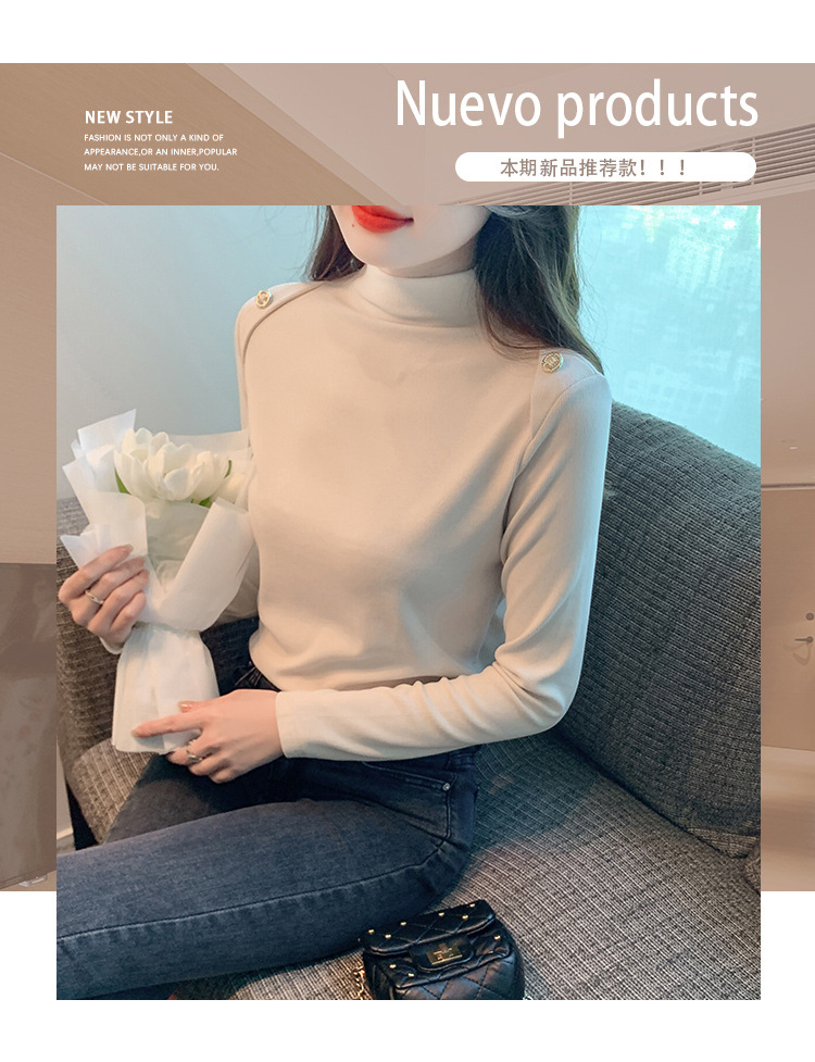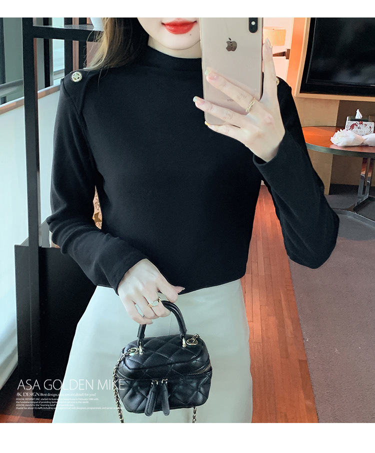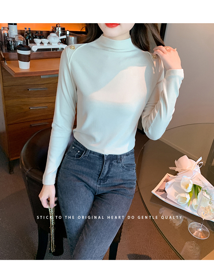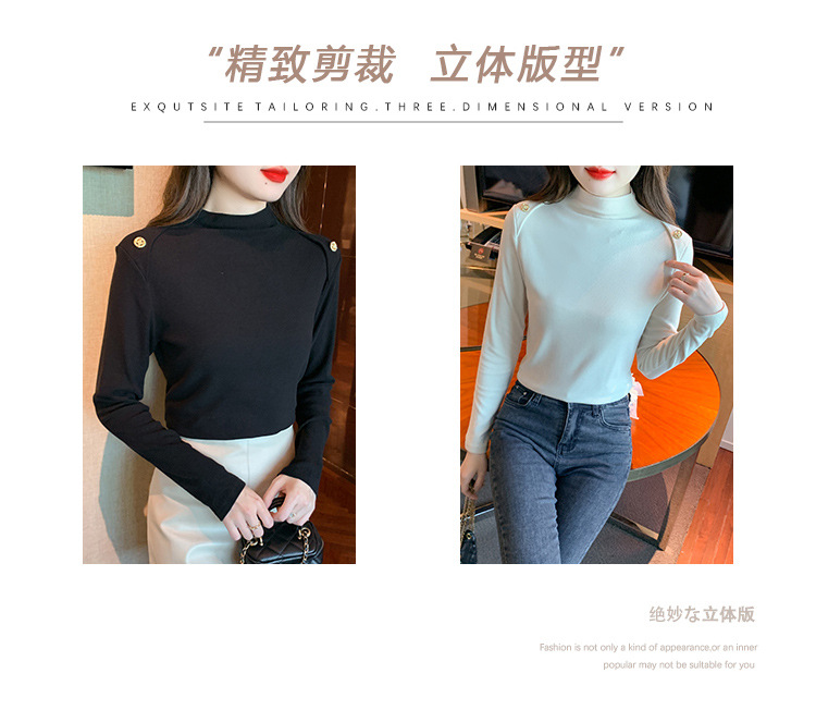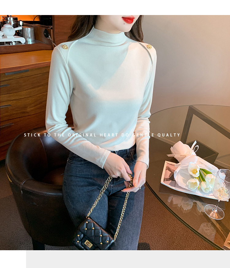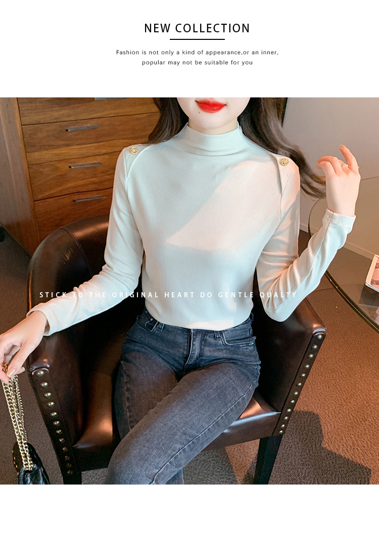 버블 스레드 2023 가을과 겨울 새로운 하프 터틀넥 디자인 센스 버튼 핏 스트립 스크럽 얇은 벨벳 모든 매치 베이스 셔츠스토어 가기