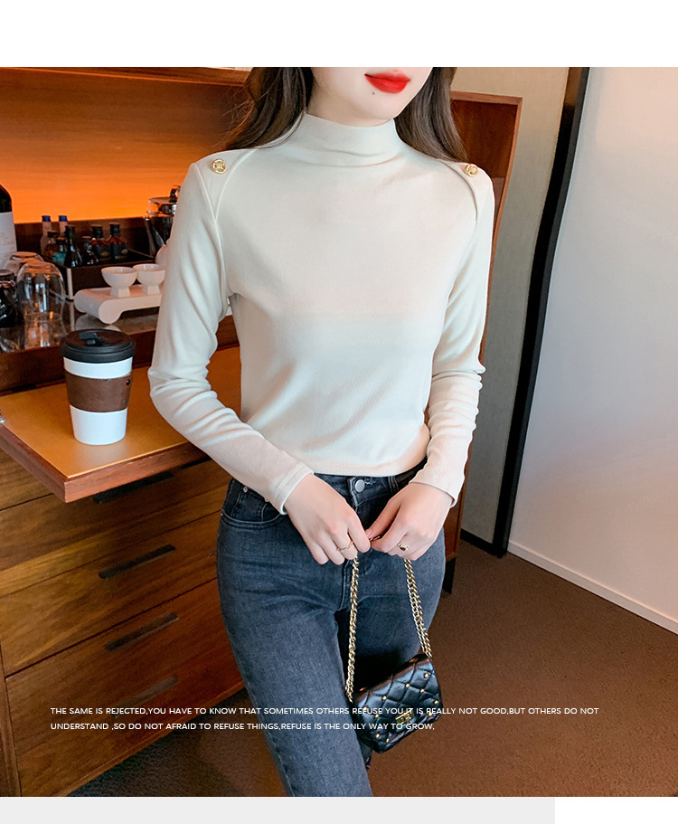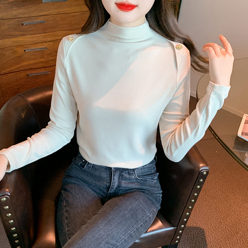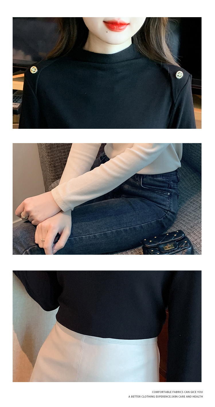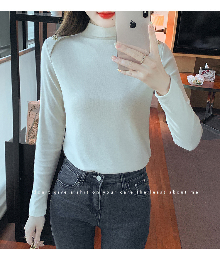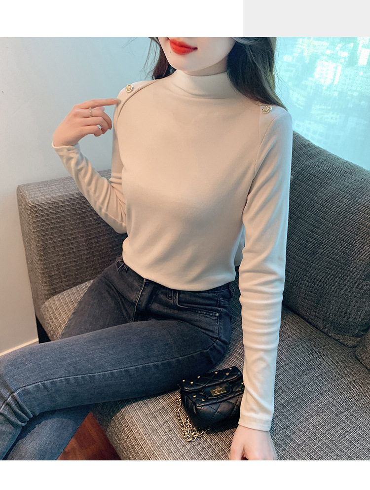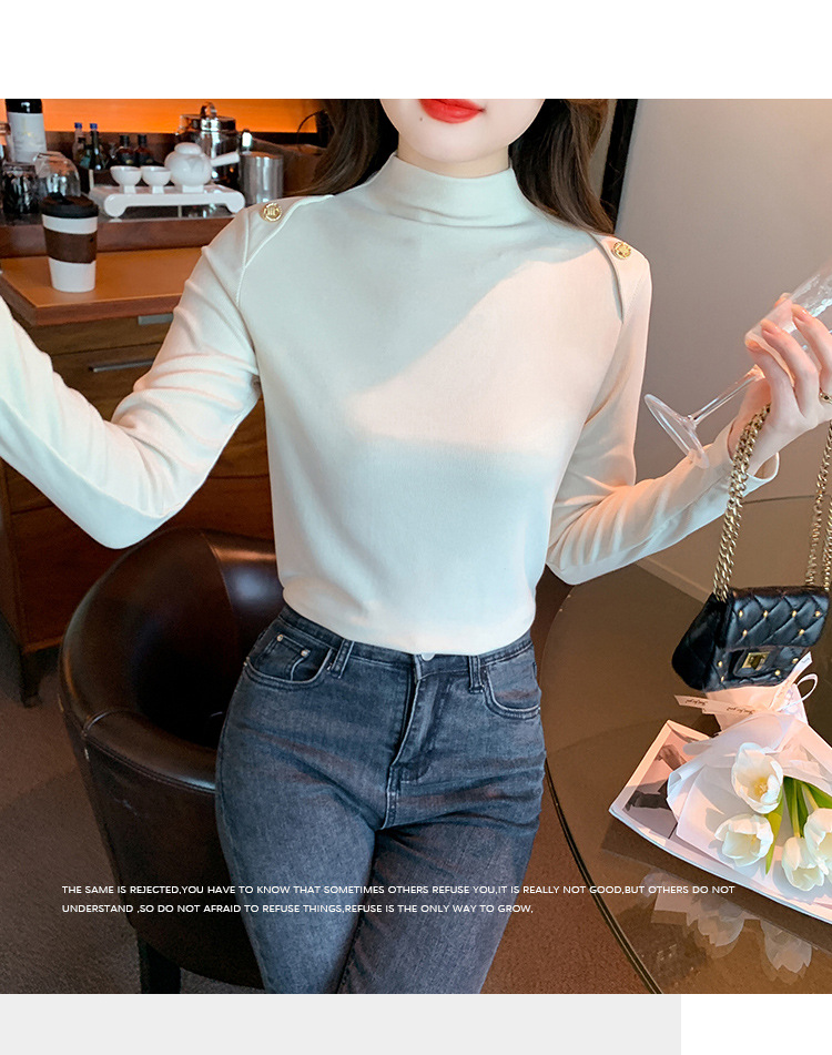 버블 스레드 2023 가을과 겨울 새로운 하프 터틀넥 디자인 센스 버튼 핏 스트립 스크럽 얇은 벨벳 모든 매치 베이스 셔츠스토어 가기