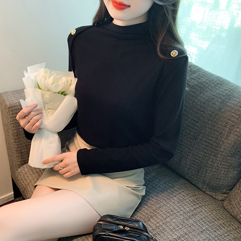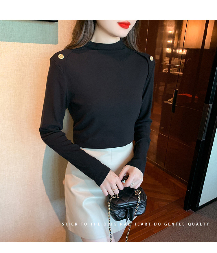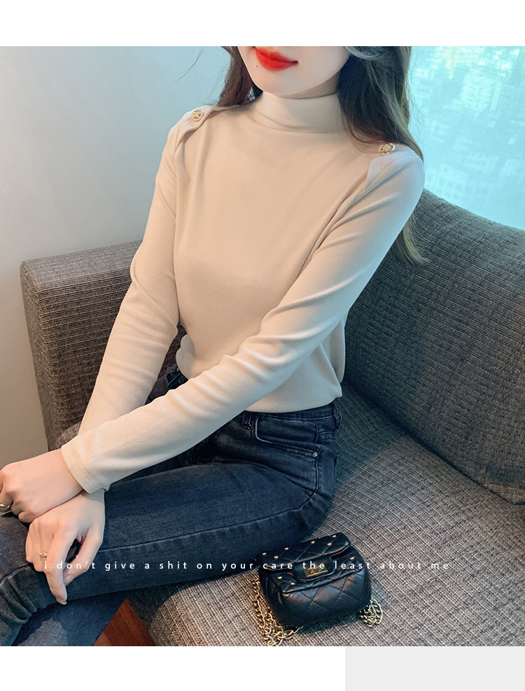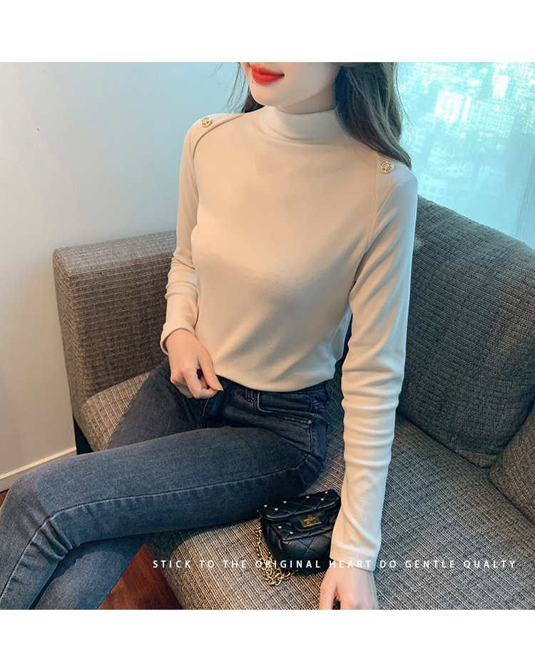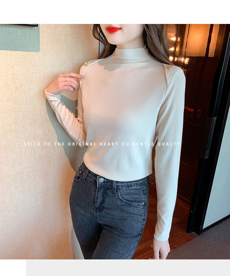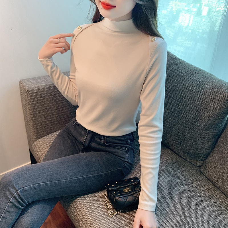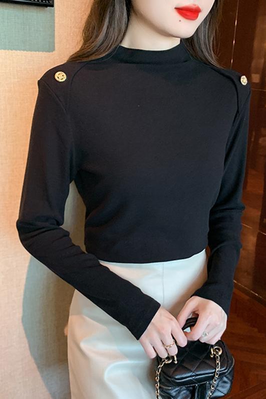버블 스레드 2023 가을과 겨울 새로운 하프 터틀넥 디자인 센스 버튼 핏 스트립 스크럽 얇은 벨벳 모든 매치 베이스 셔츠스토어 가기