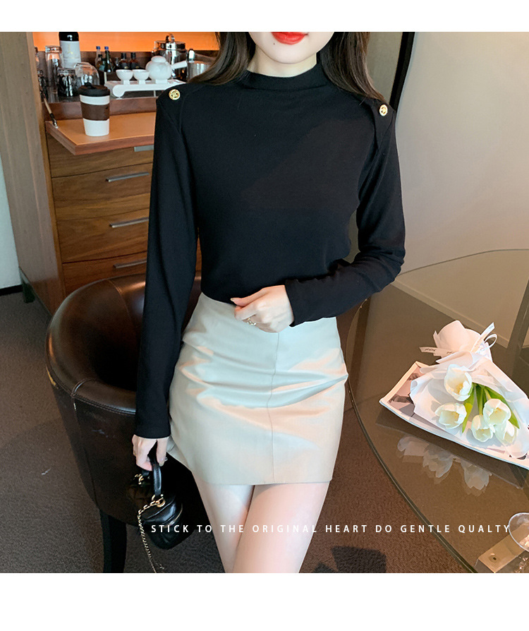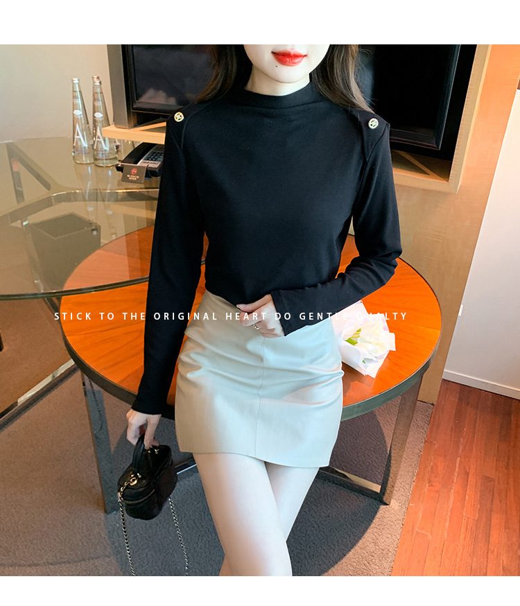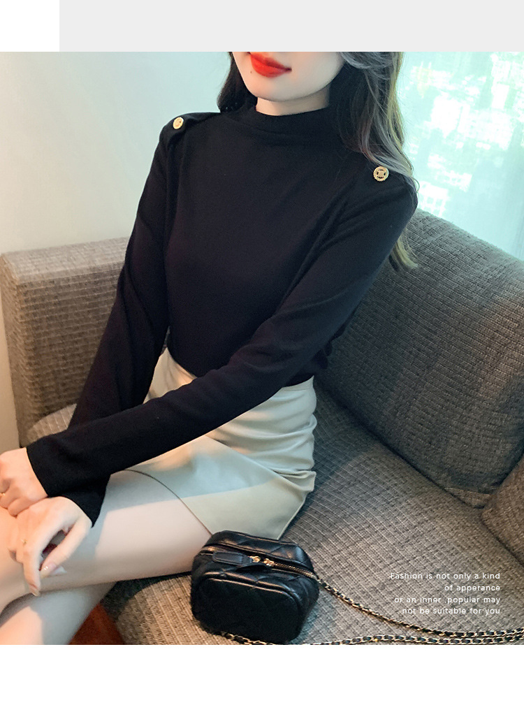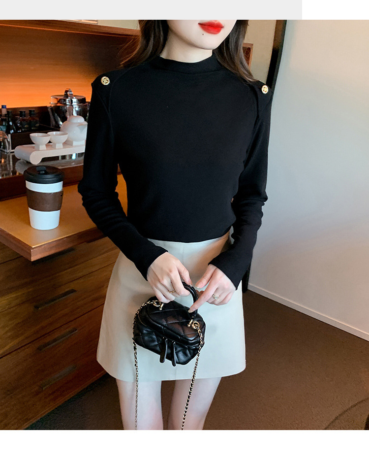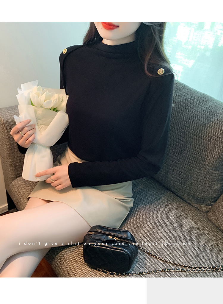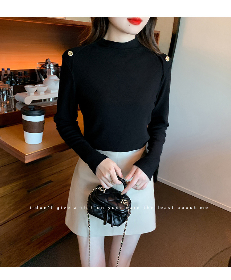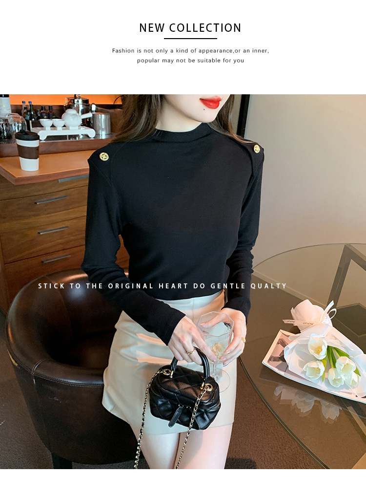 버블 스레드 2023 가을과 겨울 새로운 하프 터틀넥 디자인 센스 버튼 핏 스트립 스크럽 얇은 벨벳 모든 매치 베이스 셔츠스토어 가기