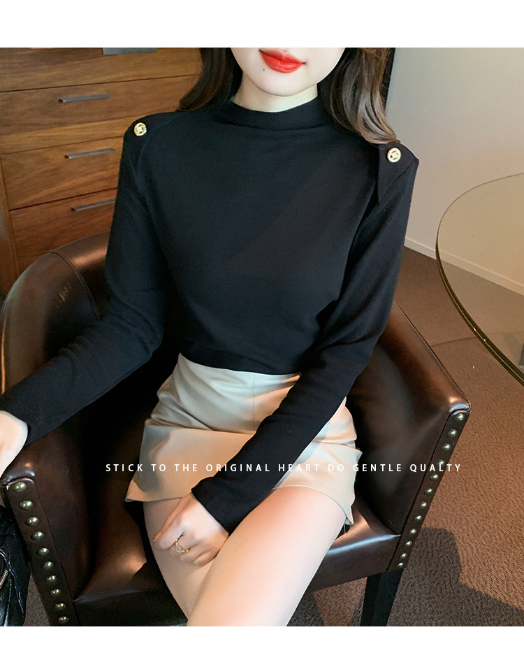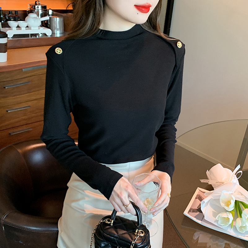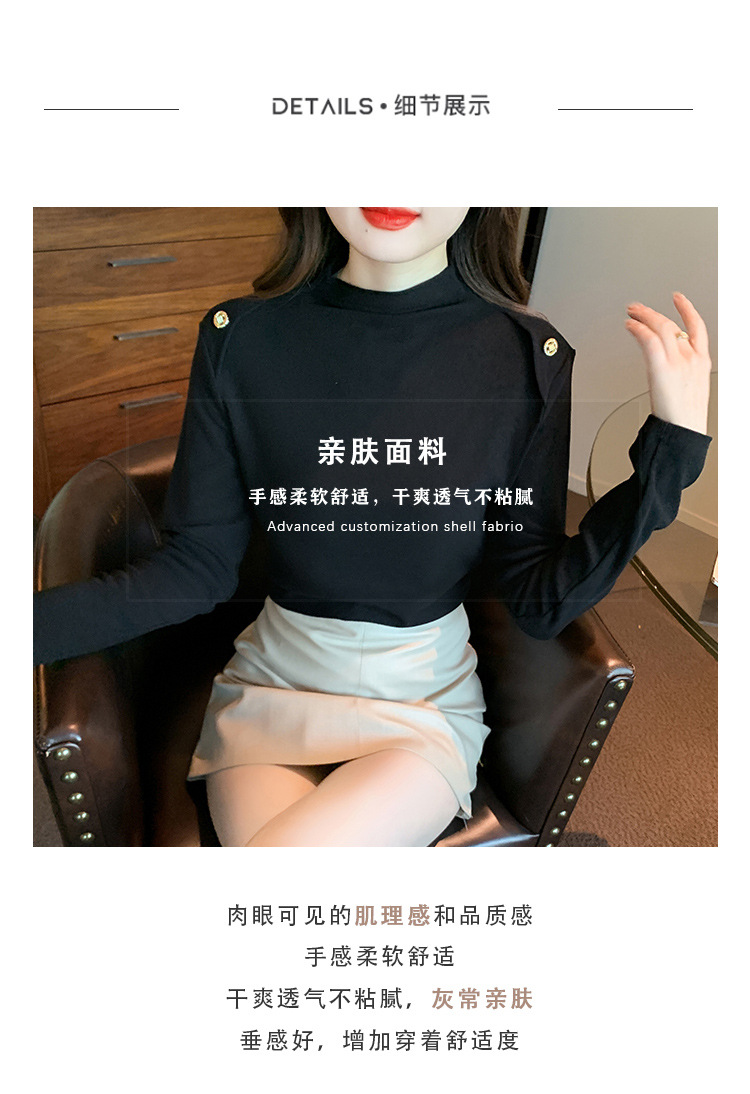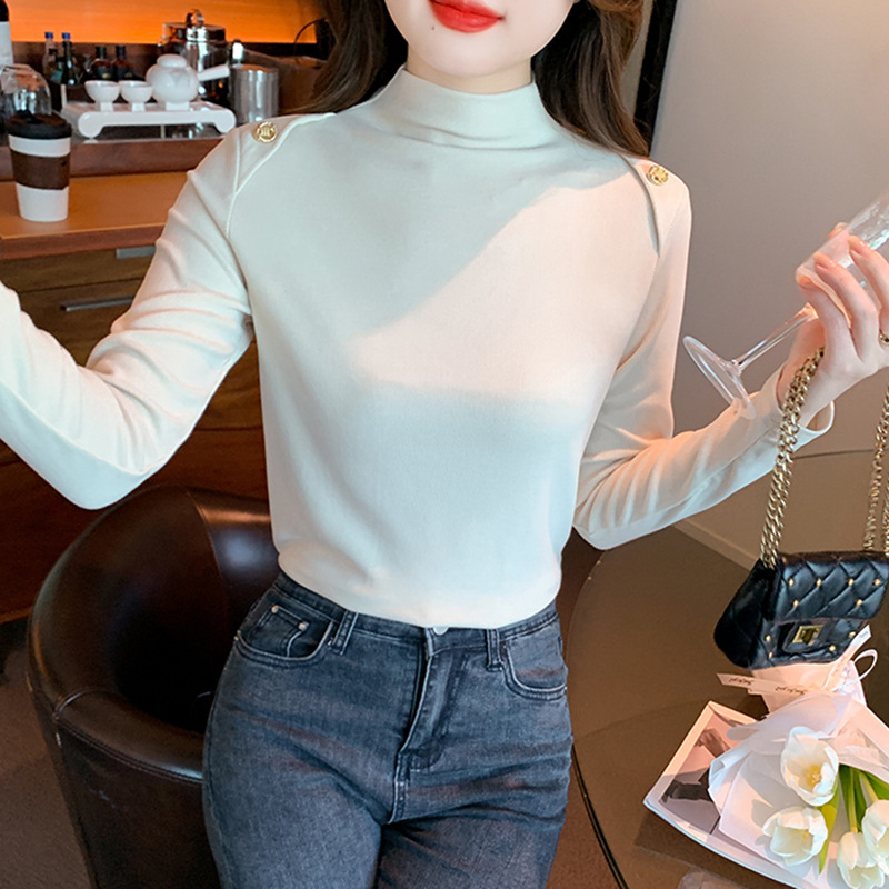 버블 스레드 2023 가을과 겨울 새로운 하프 터틀넥 디자인 센스 버튼 핏 스트립 스크럽 얇은 벨벳 모든 매치 베이스 셔츠