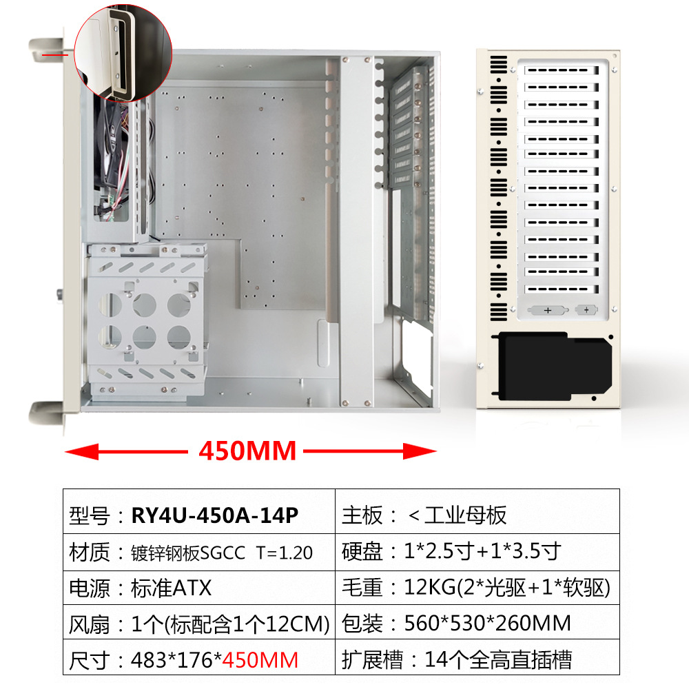 4U 산업용 제어 섀시 45cm 랙 유형 14 비트 전체 높이 카드 슬롯 산업용 메인보드 회색 젖빛 정전기 방지 1.20mm스토어 가기