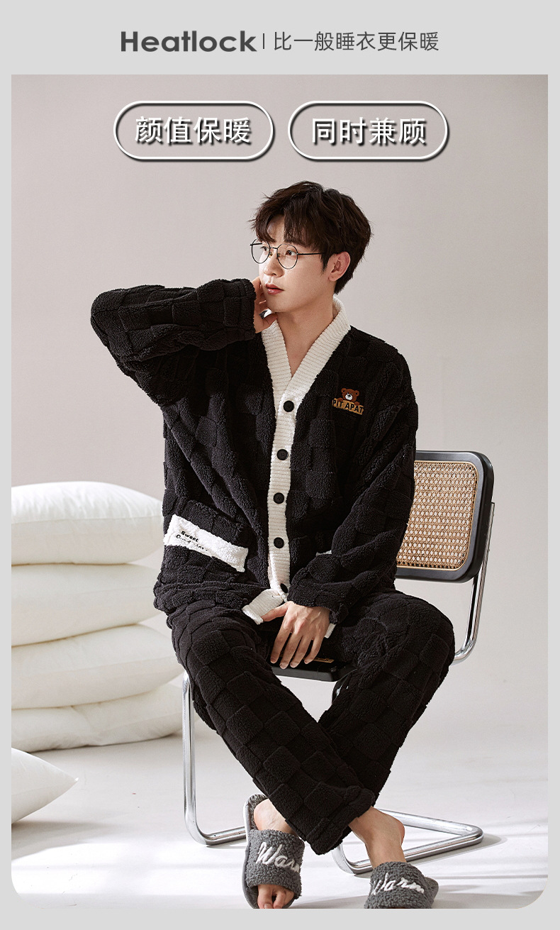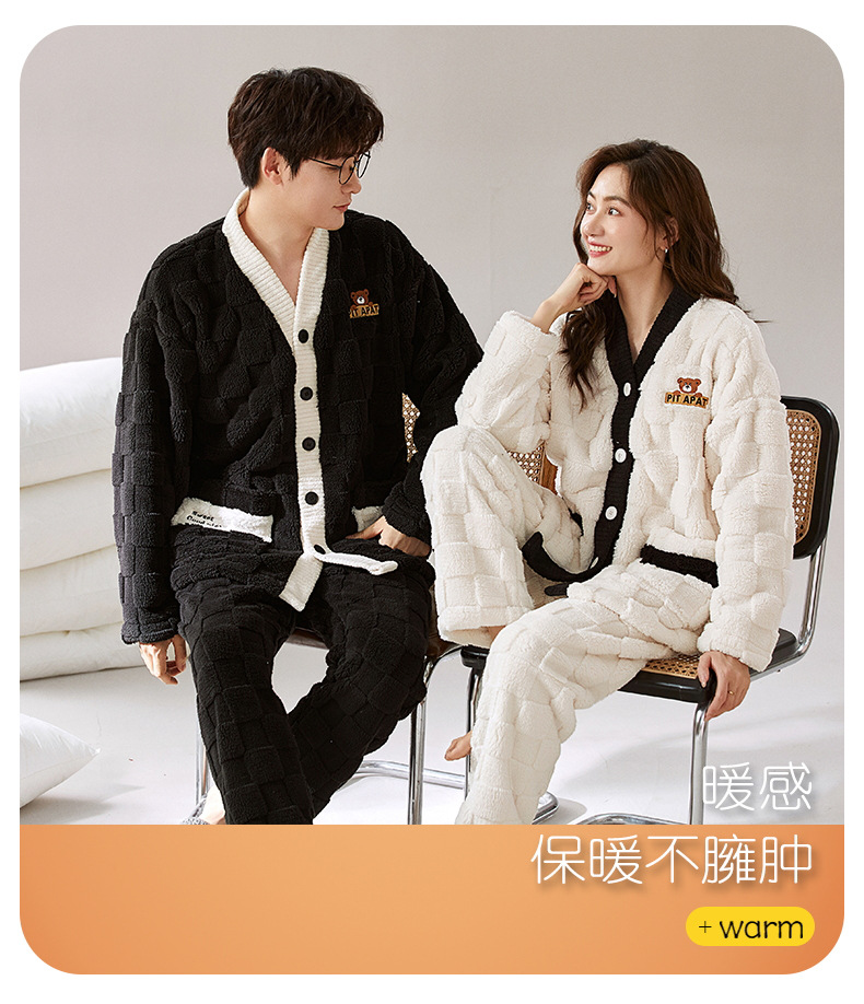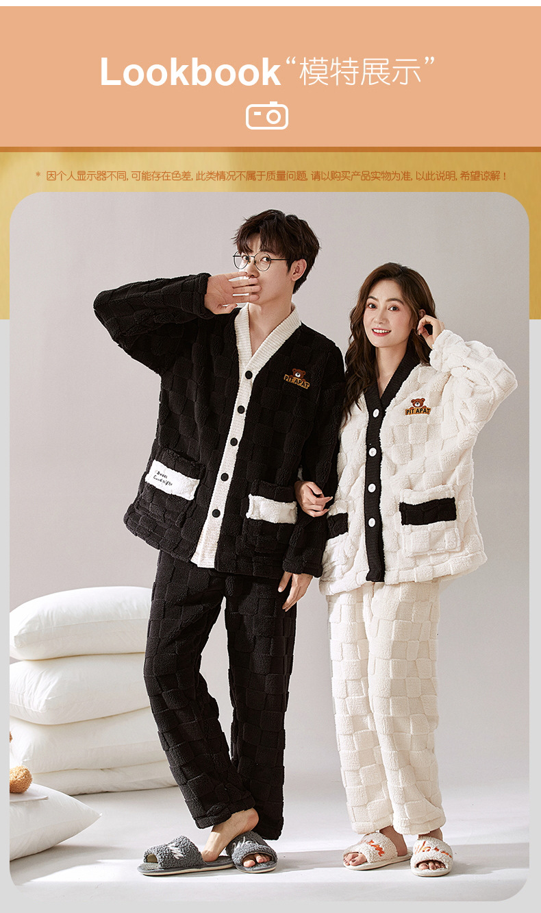 커플 잠옷 겨울 산호 양털 두꺼운 가을과 겨울 플란넬 남성과 여성의 만화 긴 소매 가정 옷 겨울스토어 가기