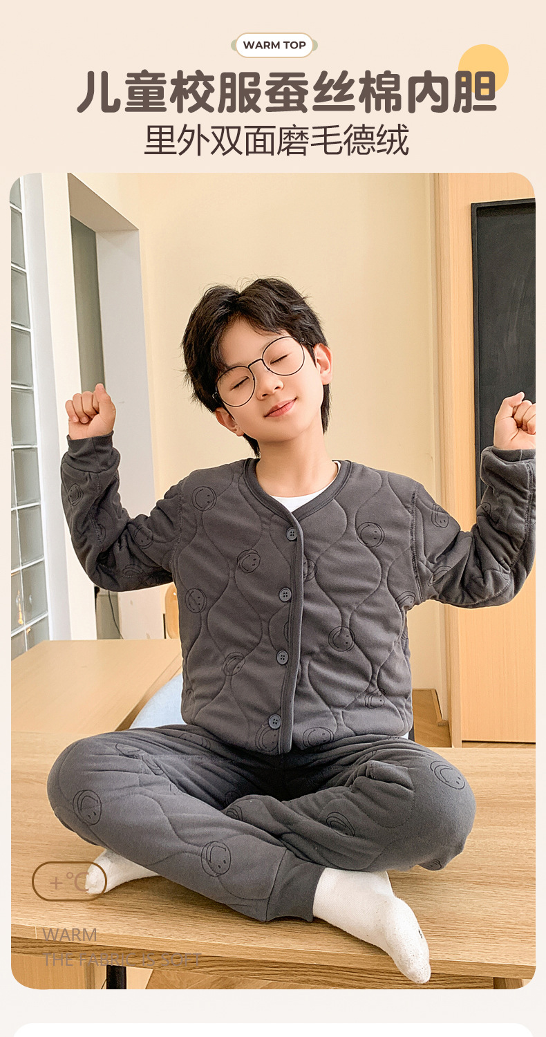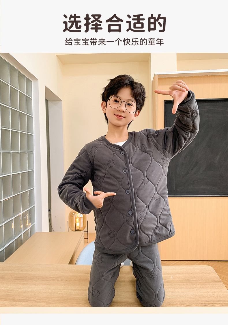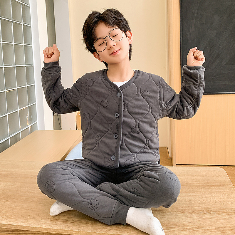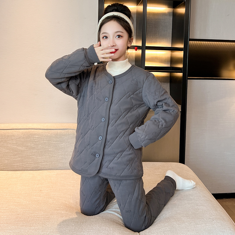 어린이 교복 유물 소년 가정 옷 세트 가을과 겨울 여아 3 층 누비 이불 잠옷 벨벳 열 속옷