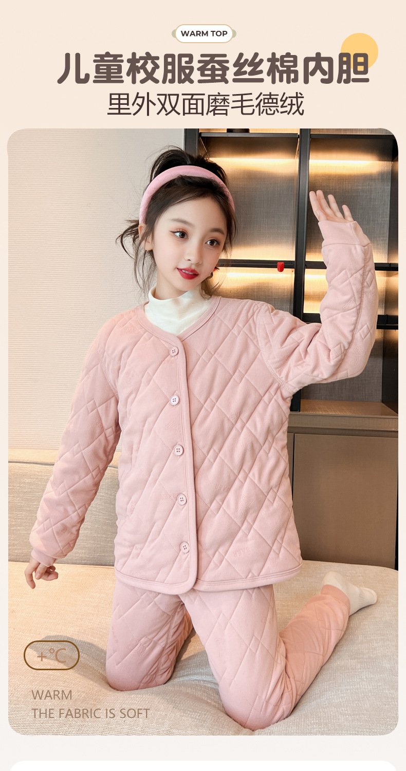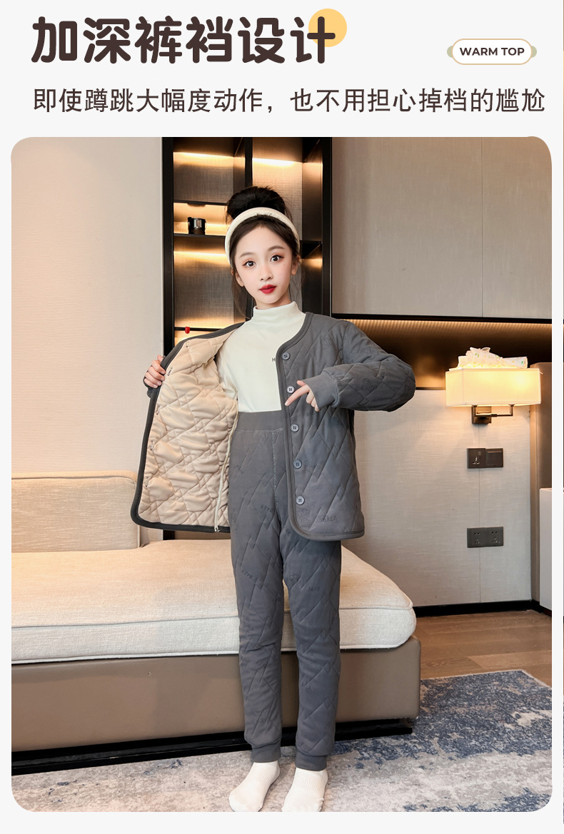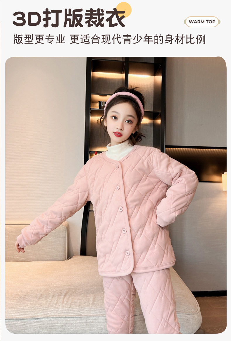 어린이 교복 유물 소년 가정 옷 세트 가을과 겨울 여아 3 층 누비 이불 잠옷 벨벳 열 속옷