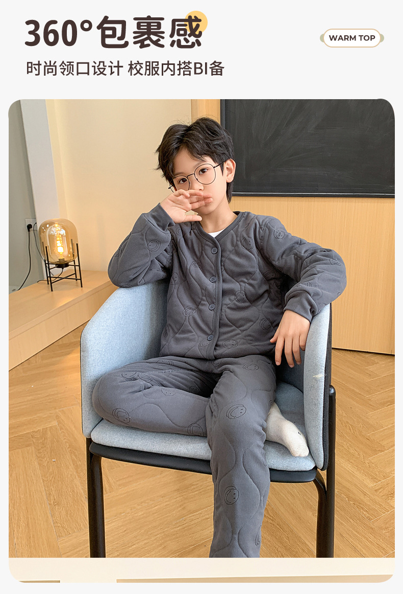 어린이 교복 유물 소년 가정 옷 세트 가을과 겨울 여아 3 층 누비 이불 잠옷 벨벳 열 속옷스토어 가기