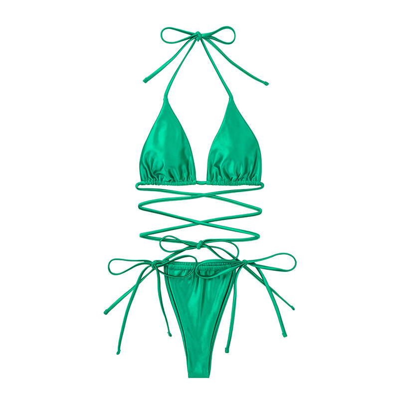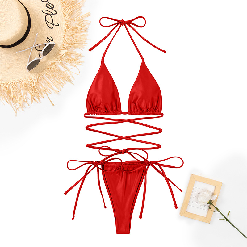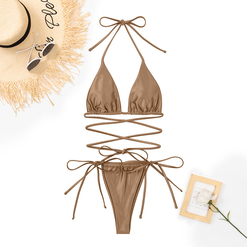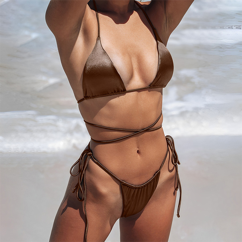 2024 유럽과 미국 스타일의 삼각형 수영복 가슴 패드가있는 대외 무역 부드러운 실크 비키니