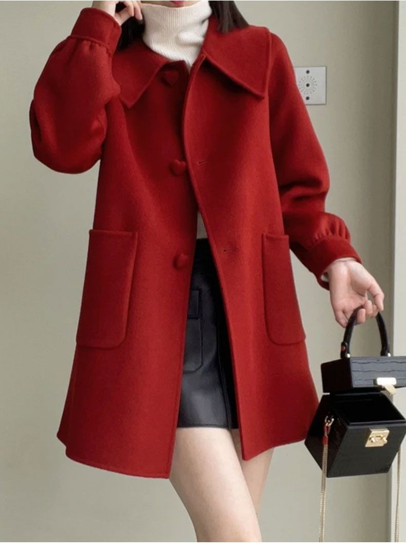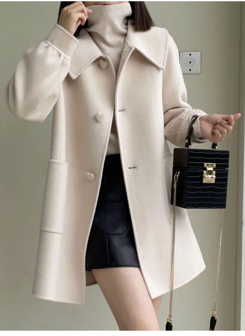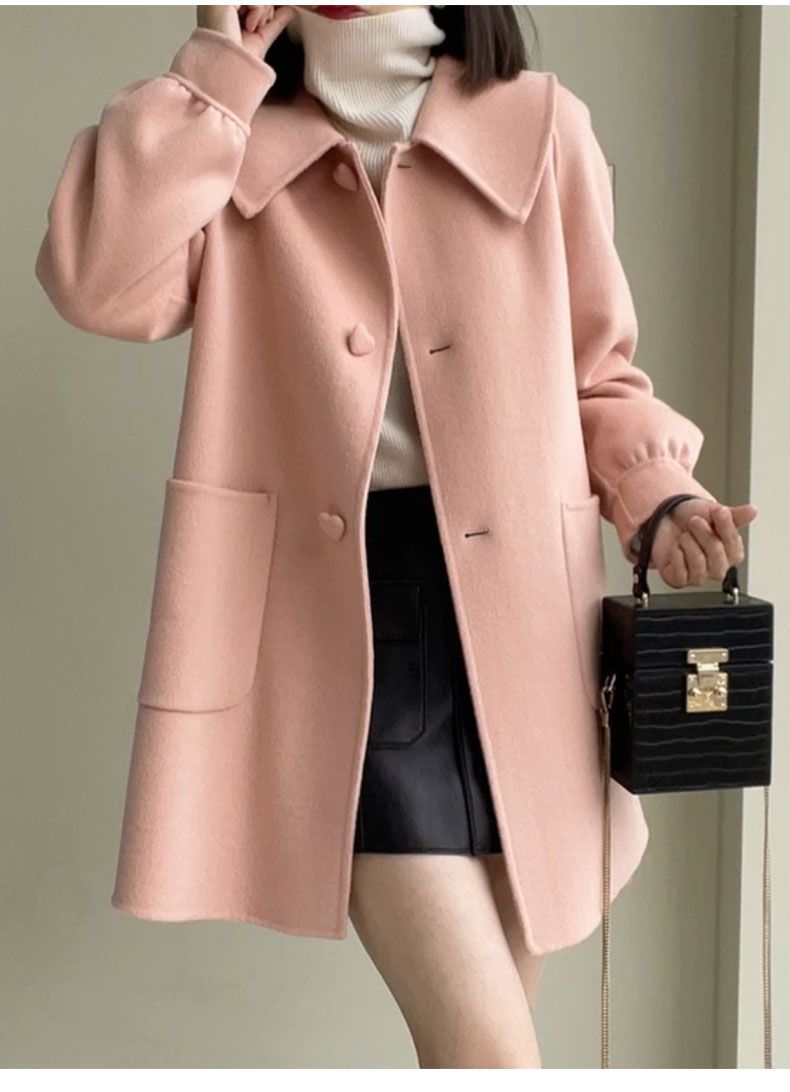 2024 가을과 겨울 새로운 중간 길이의 러브 버클 슬리밍 모직 코트 슬리밍 연령 감소 인형 칼라 모직 코트 여성용스토어 가기