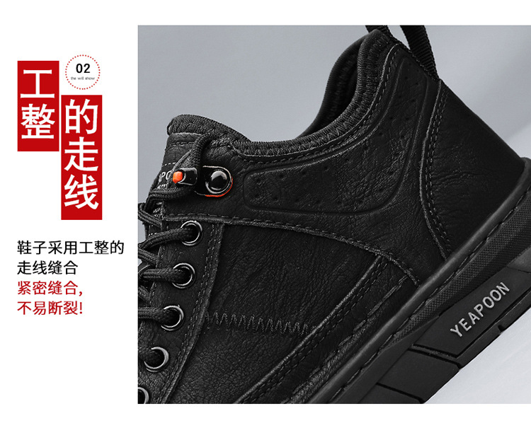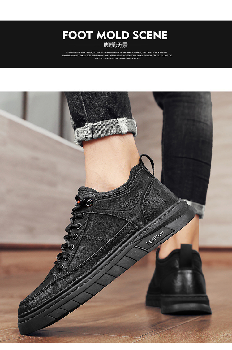 남자 신발 2024 봄 새로운 로우 탑 트렌디 가죽 신발 남성 운동화 두꺼운 올매치 신발 남성용 미끄럼 방지 운동화스토어 가기