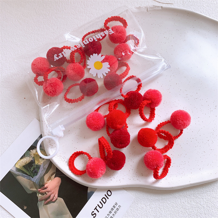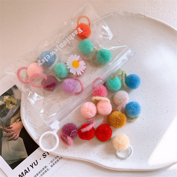 어린이 컬러 플러시 볼 미니 헤어 링 귀여운 소녀 헤어 스트랩 헤어 로프 아기 브레이드 헤어 로프스토어 가기