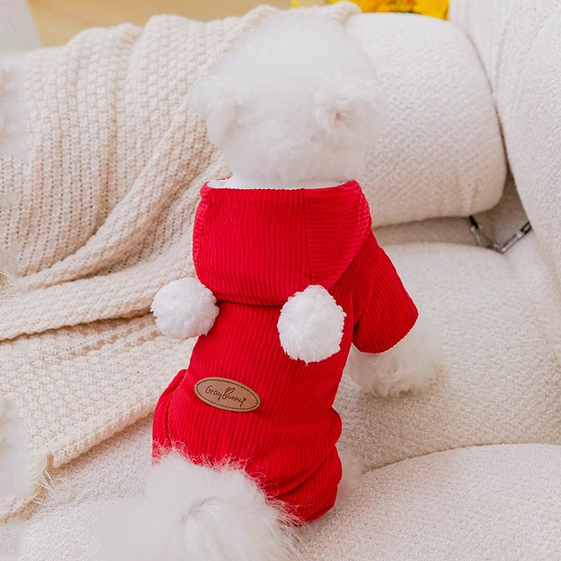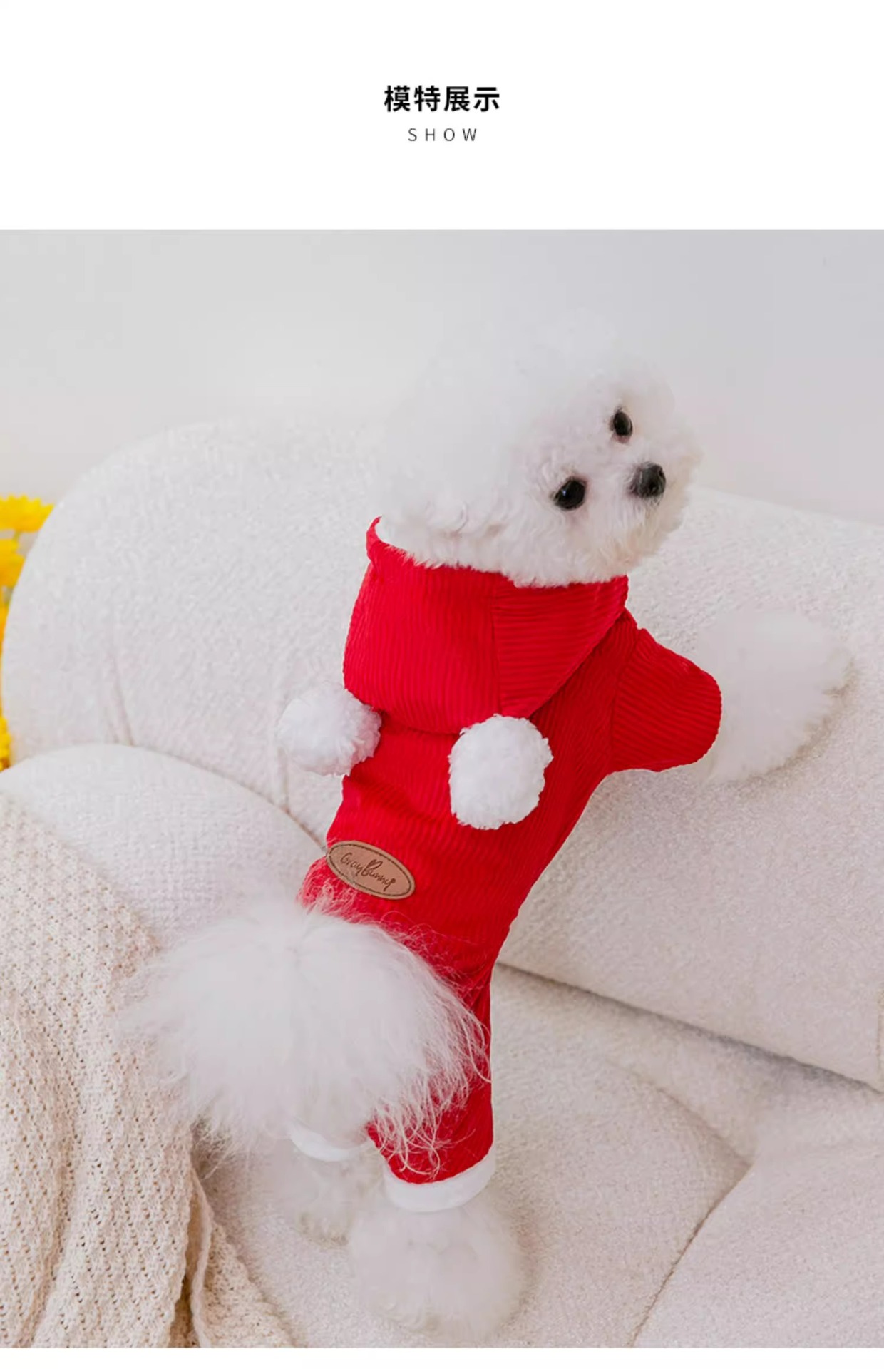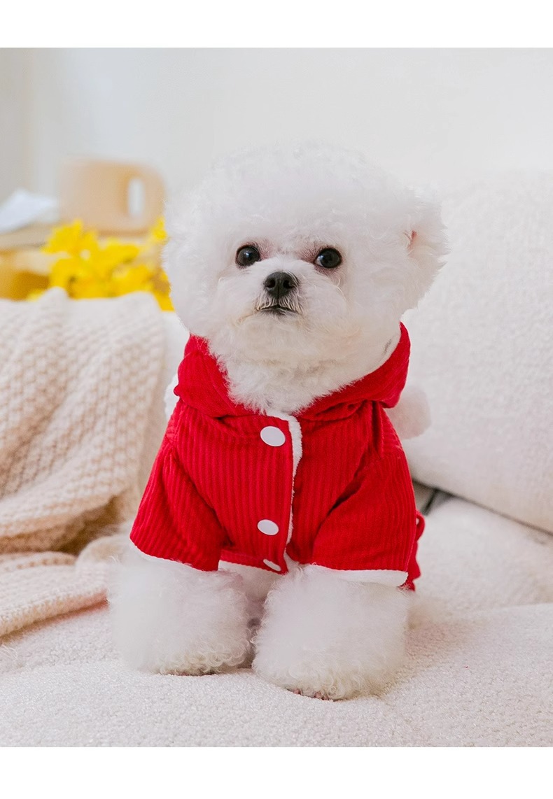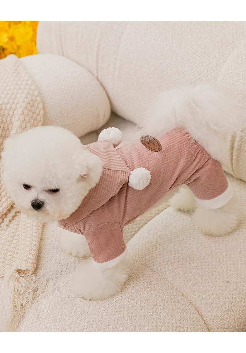 핑크 더블 모피 공 가죽 라벨 코듀로이 두건면 패딩 코트 두꺼운 발 봄과 가을 애완견 개 옷 도매