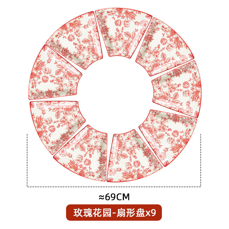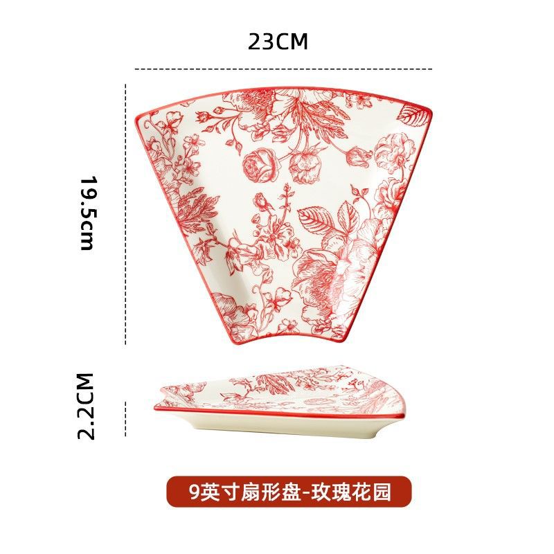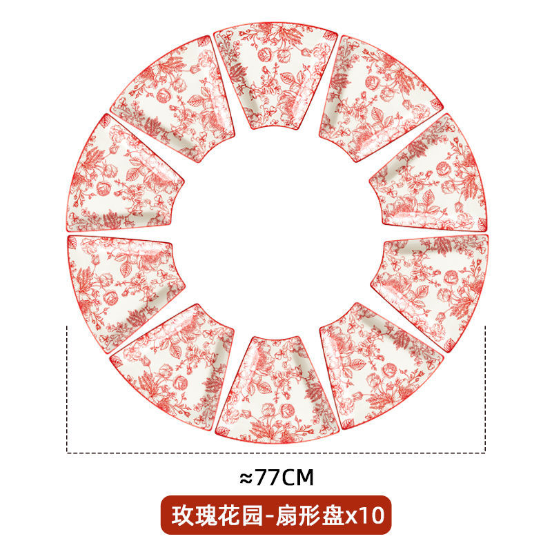 • 로즈 가든-부채 모양의 접시 x10 + 1 큰 그릇