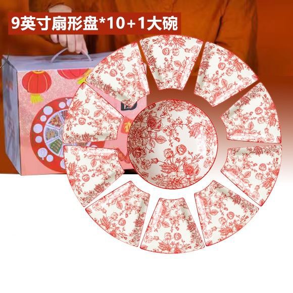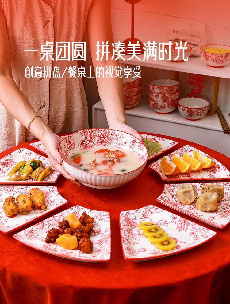 동창회 플래터 식기 조합 세라믹 성격 창조적 인 인터넷 축하 원형 테이블 새해 전날 저녁 식사 설날 집들이 요리 세트