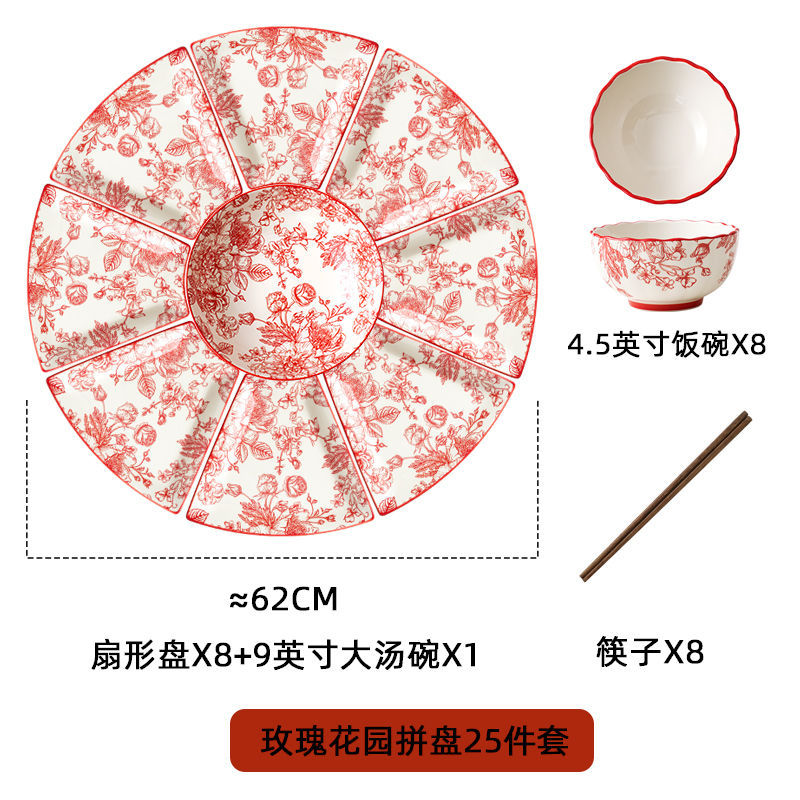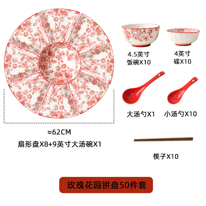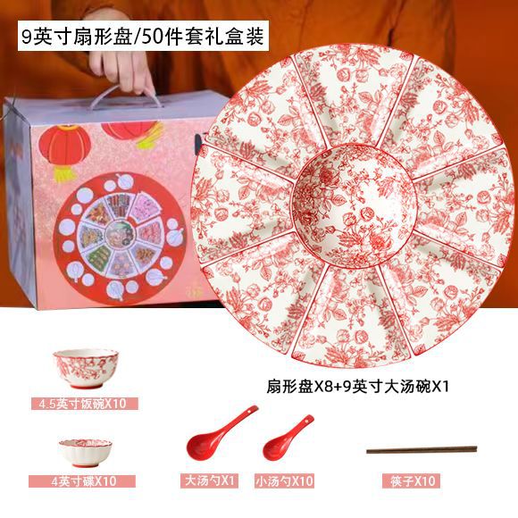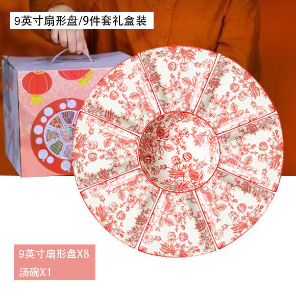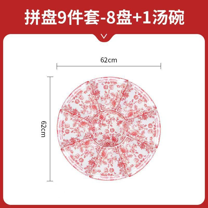 동창회 플래터 식기 조합 세라믹 성격 창조적 인 인터넷 축하 원형 테이블 새해 전날 저녁 식사 설날 집들이 요리 세트스토어 가기
