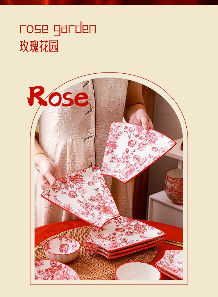 • 로즈 가든-8 접시 10 그릇 + 1 큰 그릇