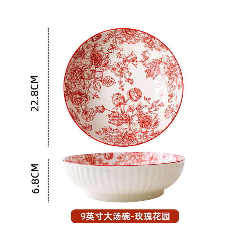 • 9 "대형 수프 그릇-로즈 가든 * 1