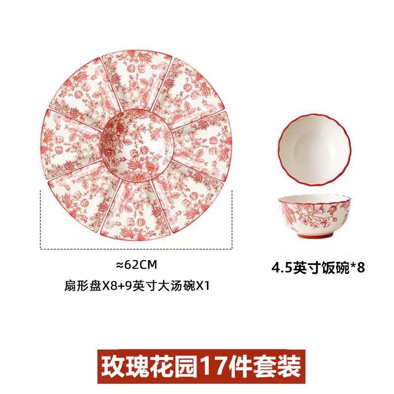 • 로즈 가든-접시 8 개, 젓가락 8 개, 그릇 8 개 + 큰 그릇 1 개