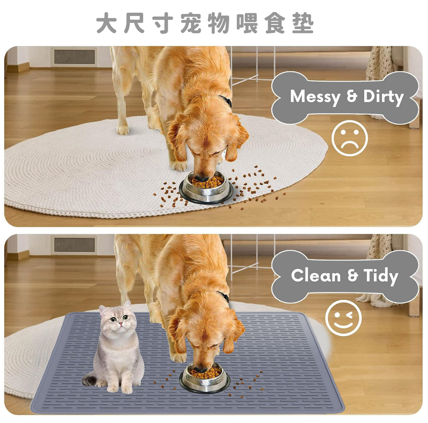 국경을 넘어 인기 있는 초대형 실리콘 애완동물 매트 대형 미끄럼 방지 고양이 모래 매트 실리콘 고양이 및 강아지 급식 매트